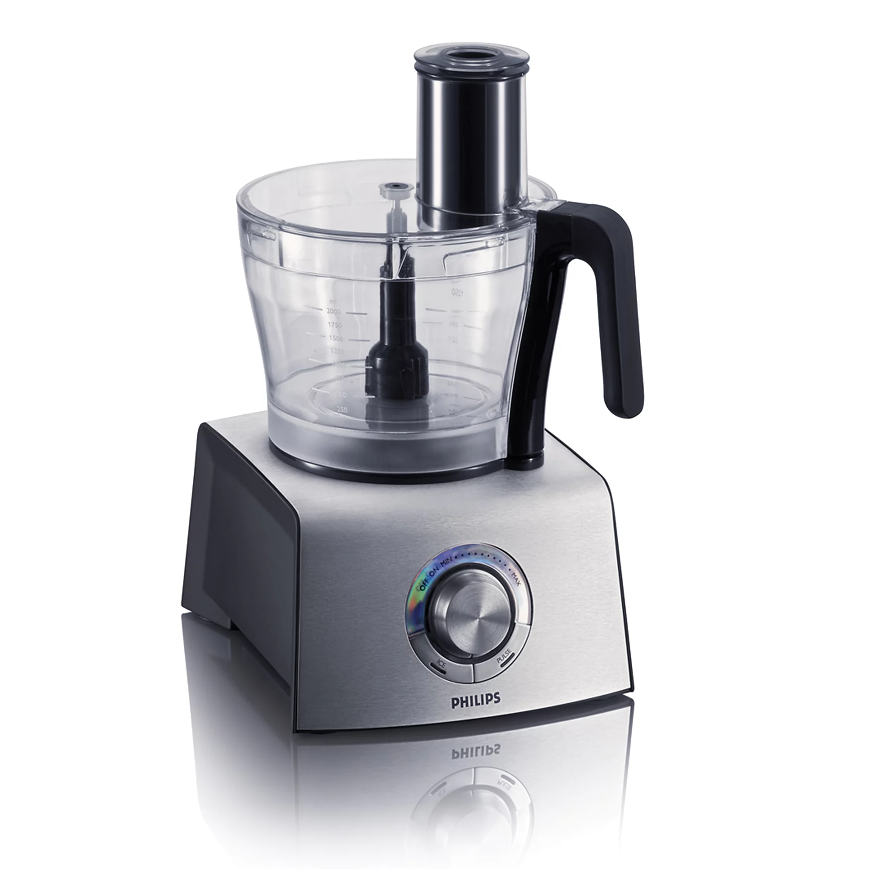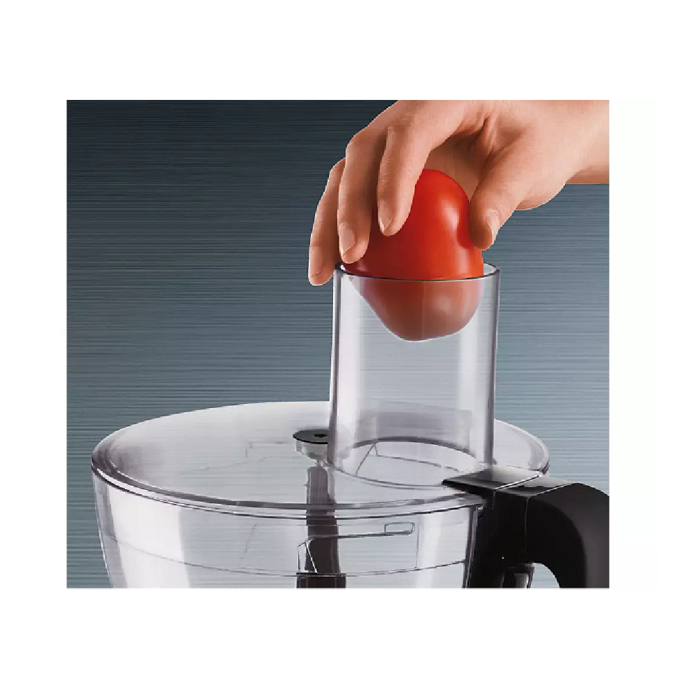 ظرف اصلی غذاساز فیلیپس مدل 7775 دارای گنجایشی معادل 3.4 لیتر است که این میزان گنجایش برای 2 لیتر سوپ، 1.7 کیلوگرم خمیر و 7 سفیده تخم مرغ ایده آل خواهد بود. جنس این ظرف از پلاستیک (SAN) بسیار مقاوم و با کیفیت ساخته شده است. دهانه ورودی ظرف غذاساز با سایز بزرگ طراحی شده است که میتوانید میوهها و سبزیجات را به شکل کامل وارد ظرف کنید، بنابراین دیگر نیازی به برش دادن آنها ندارید.