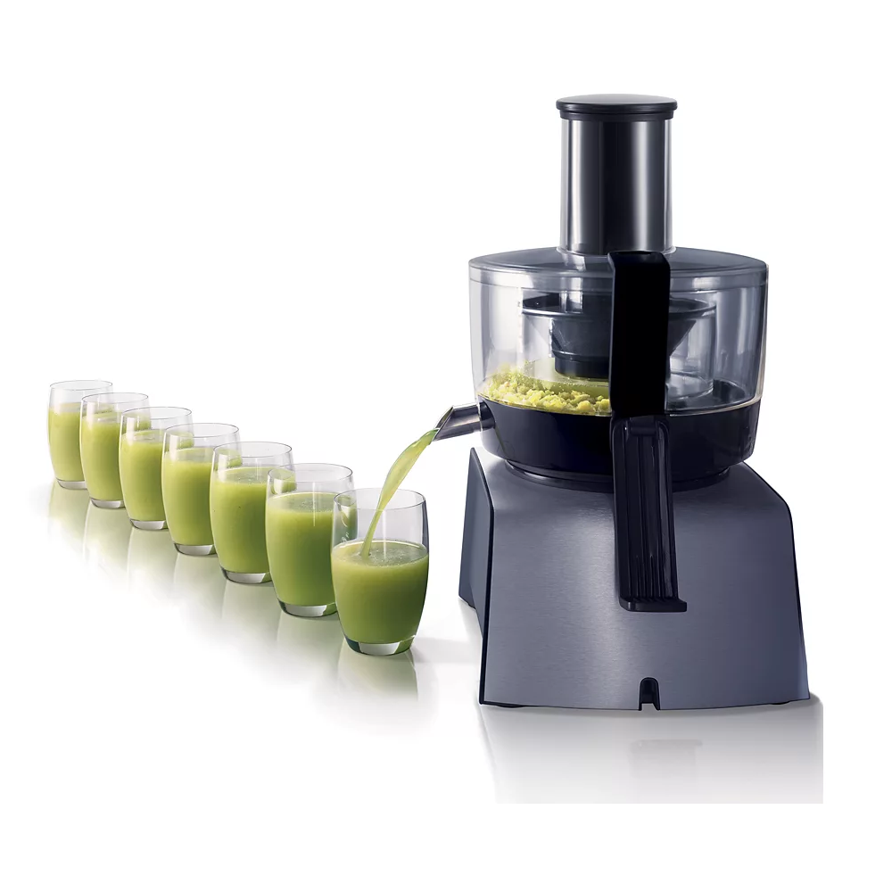غذاساز PHILIPS HR7775 به یک مخزن جداگانه آب میوه گیری مجهز شده است که میتوانید برای تهیه آب میوههای تازه و لذیذ از آن استفاده کنید. به لطف وجود ورودی بزرگ مواد غذایی و فیلتر مشبک فلزی بزرگ، میتواند تا 200 درصد سریعتر در مقایسه با دیگر آبمیوهگیریهای غذاساز آبگیری کند. فیلتر میکرومش از استیل ضد زنگ ساخته شده و تا آخرین قطره آبمیوه را استخراج می کند. سری مخصوص آب مرکبات گیر که برای تهیه آب پرتقال و دیگر مرکبات با سرعت بالا تعبیه شده و بسیار کارآمد است. چهار عدد دیسک رنده ریز و درشت، دیسک خلال کن و چیپس کن همگی از استیل ضد زنگ ساخته شدهاند. دیسکها برشهایی به ضخامت 1 تا 7 میلیمتر ایجاد میکنند.