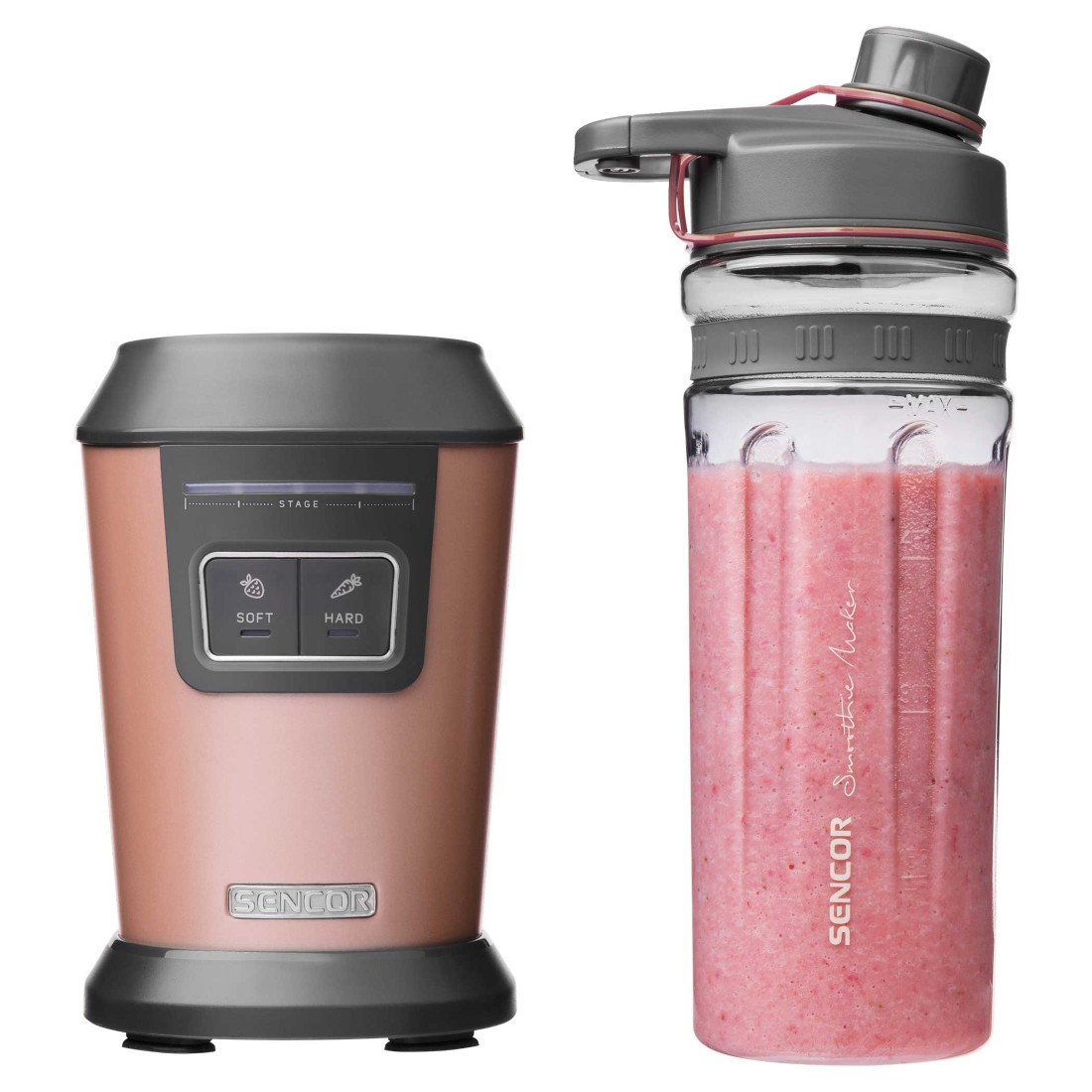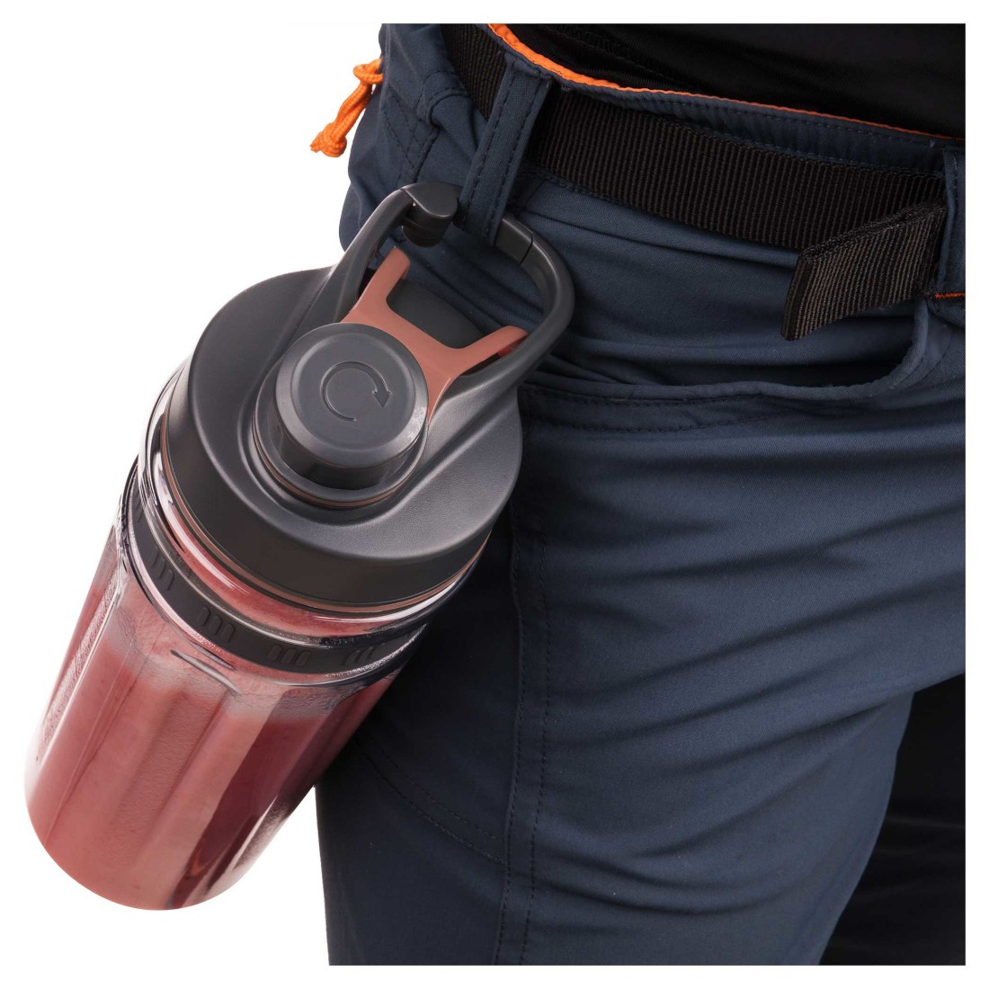 این مدل اسموتی ساز یک بطری اسپرت 0.6 لیتری دارد که شما می توانید از آن برای زمان هایی که در باشگاه یا بیرون از منزل هستید استفاده کنید. این بطری ها قابل حمل و جابه جایی هستند. با توجه اندازه ی مناسب و به درب محکمی که دارند شما می توانید آن را به آسانی در کیف، ماشین و یا به شلوارتان بچسبانید. با توجه به اینکه جنس بطری ها از پلاستیک تریتان است شما می توانید هم نوشیدنی های سردتان و هم نوشیدنی های گرم تان را در داخل این بطری ها نگهداری کنید، بدون آنکه نگران انتشار و یا واکنش شیمیایی مواد با بطری شوید. زیرا بطری فاقد BPA است.