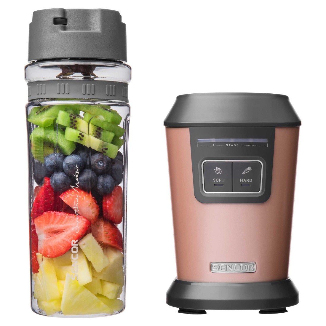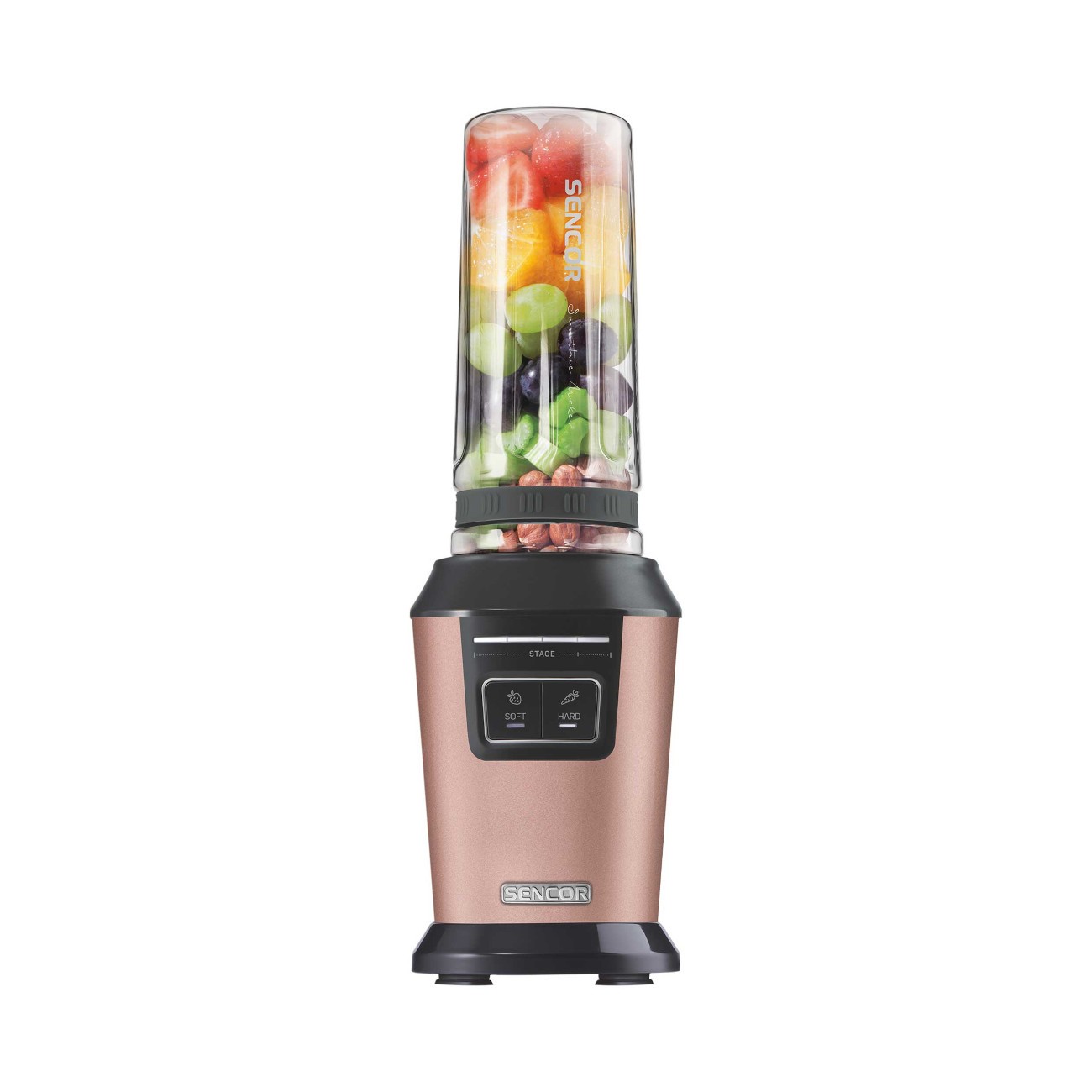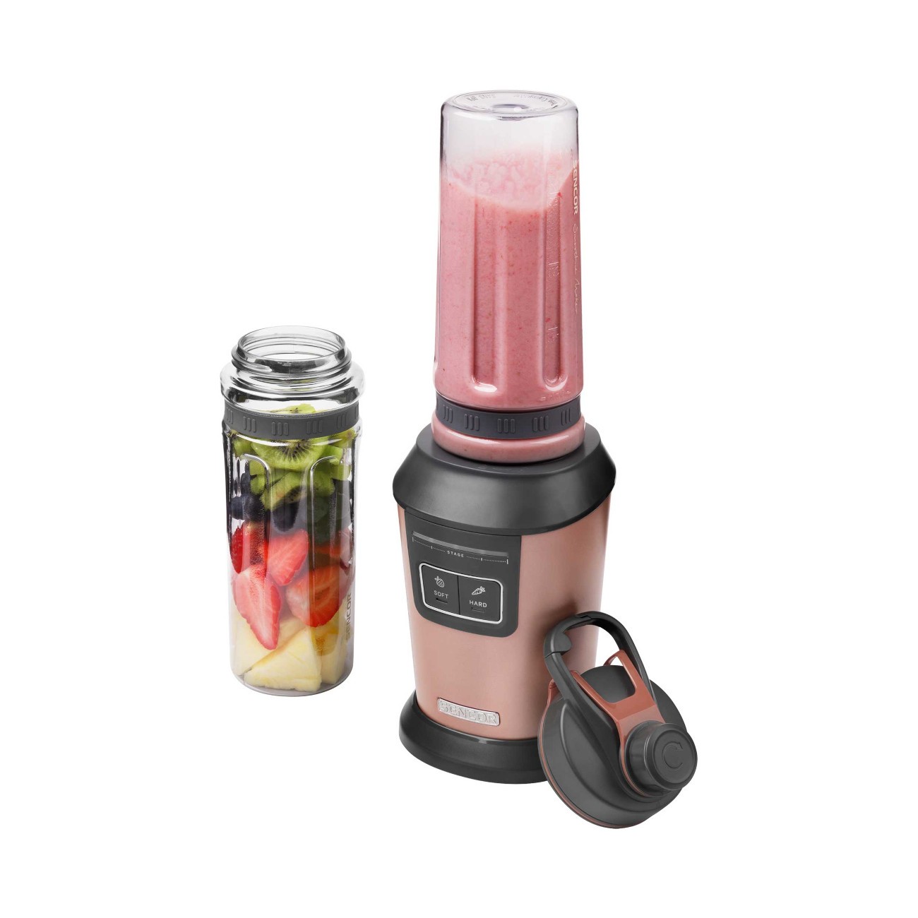 این اسموتی ساز یکی از محصولات با کیفیت برند سنکور است که شما به وسیله ی آن می توانید بهترین اسموتی ها را تنها در چند دقیقه آماده نمایید. این محصول دارای دو عملکرد سرعتِ از پیش تعیین شده است؛ یک حالت برای مواد نرم به مدت 45 ثانیه و حالت دیگر برای مواد سخت به مدت 60 ثانیه است. همچنین این دستگاه دارای عملکرد پالس می باشد که به ترکیب کردن بهتر مواد در دستگاه کمک می کند.