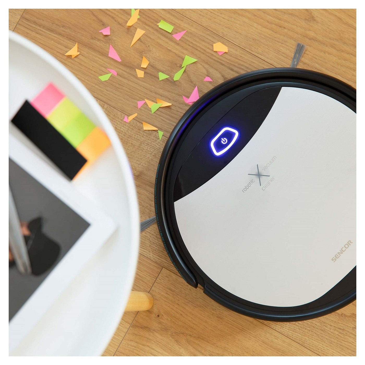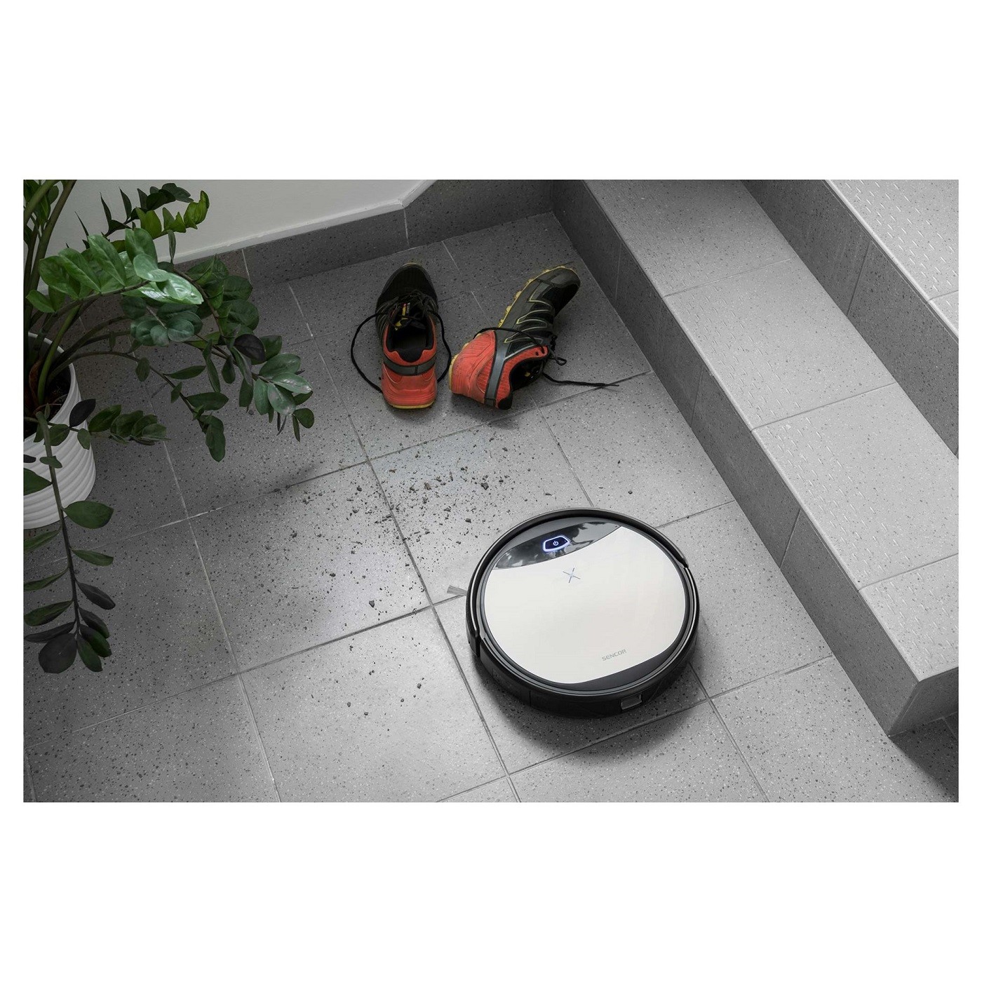 این مدل جاروی رباتیک سنکور می تواند در انواع کف خرده ریزها، گرد و غبار و حتی ذرات بزرگتر را با استفاده از برس اصلی چرخان کاملاً تمیز کند. این دستگاه با کمک برس های چرخان جانبی، کف لمینتی، کف چوبی، کاشی و فرش های کم مو را جاروبرقی می کند.