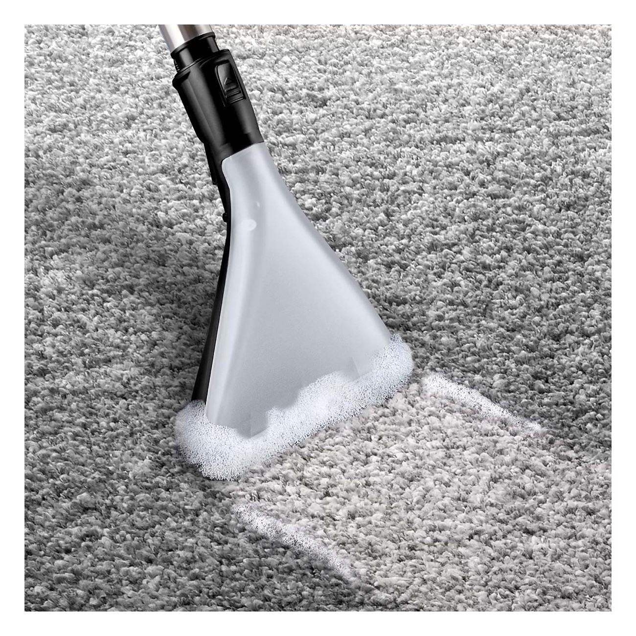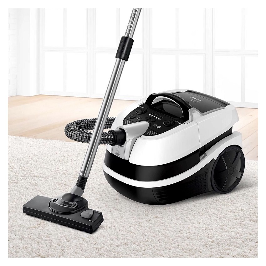 جارو برقی Bosch مدل BWD421PRO هم از نوع کیسه ای و هم از نوع مخزن دار است. ظرفیت کیسه جارو برقی 3.5 لیتر است که می توانید برای جارو سطوح خشک از آن استفاده کنید. مخزن این جارو برقی دارای ظرفیت بالای 5 لیتر است که می توان به کمک آن مبلمان و فرش های خود را بشویید و در صورت پر شدن مخزن به راحتی آن را جدا کرده و تخلیه کنید. لوله تلسکوپی جارو، فلزی است که دارای قابلیت تنظیم ارتفاع نیز می باشد. قابلیت compressor جارو برقی باعث می شود که زباله ها تا حد امکان فشرده شده و امکان جمع آوری زباله بیشتری را فراهم می کند.