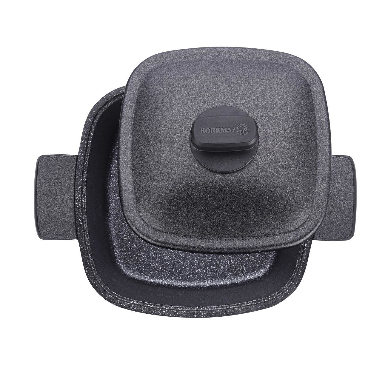 تابه KORKMAZ CASTERRA A 2584 دارای ظاهری آتشفشانی با پوشش خارجی سیلیکونی است که در برابر حرارت بالا بسیار مقاوم بوده و سطح بیرونی آن تغییر رنگ نمی دهد. جنس درب ماهیتابه نیز از گرانیت با دستگیره باکالیت نسوز است. دسته های ماهیتابه نیز هم جنس بدنه هستند و به صورت یکپارچه ساخته شده اند. این تابه به راحتی با ماشین ظرفشویی قابل شستشو است.