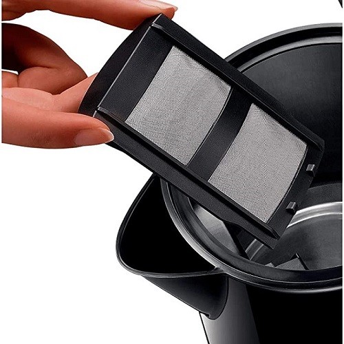 در کتری چای ساز فیلیپس مدل 7301 از یک فیلتر ضد رسوب استفاده شده است، که رسوب موجود در آب را گرفته و به شما این امکان را می دهد که یک چای سالم را میل کنید. فیلتر به راحتی قابل جابه جایی بوده و می توانید آن را تمیز کنید. قوری نیز دارای یک فیلتر تفاله گیر از جنس استیل ضد زنگ است.