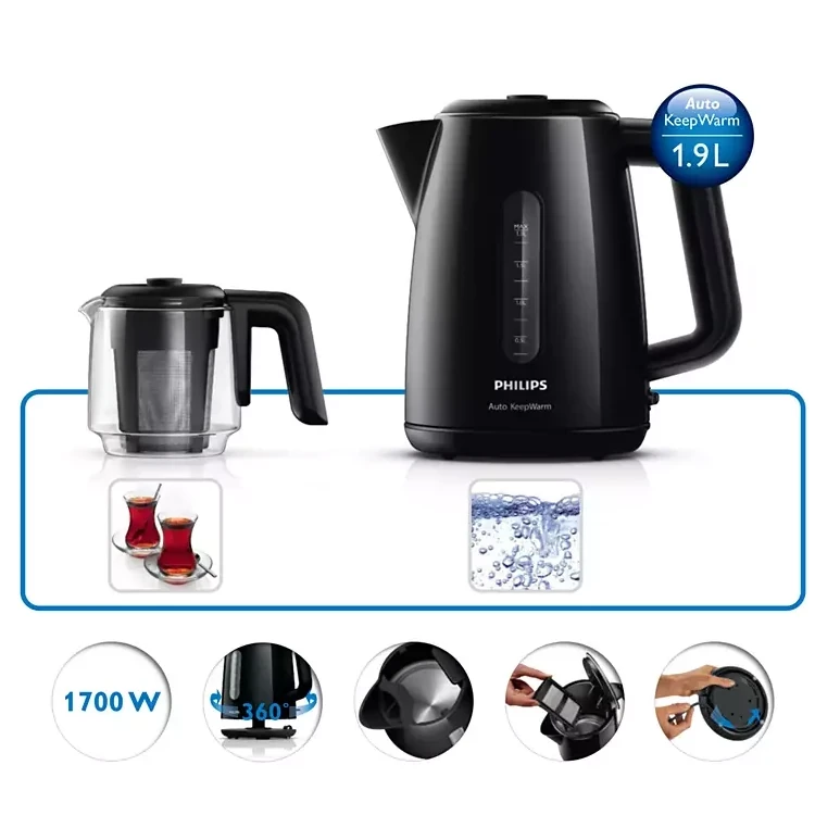 چای ساز مدل HD 7301 فیلیپس از توان 1700 واتی بهره می برد و آب داخل کتری در سریع ترین زمان ممکن به جوش می آید. کتری این محصول می تواند 1.9 لیتر آب را در خود جای دهد و شما مدت زمان زیادی آب جوش در دسترس دارید. همچنین قوری شیشه ای چای ساز با ظرفیت 0.9 لیتر به شما این امکان را می دهد تا برای تمام خانواده خود چای آماده کنید. بدنه کتری از یک نوع پلاستیک پلی پروپیلن ساخته شده که بسیار محکم و باکیفیت است. رنگ مشکی این چای ساز می تواند هارمونی خاصی با آشپزخانه شما ایجاد کند.