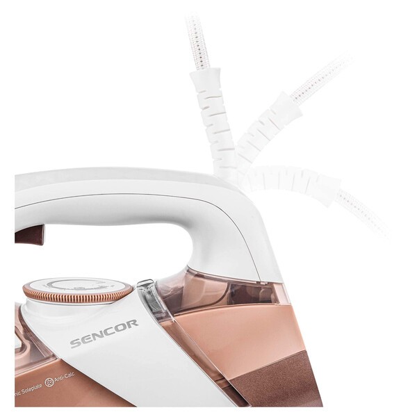 اتو بخار 8300 سنکور مجهز به فیلتر دائمی Anti-Calc می باشد که مانع از تشکیل رسوبات می شود. در صورت نیاز به تمیز کردن فیلتر، کافی است دکمه “Self Clean” را فشار دهید تا مجراهای آب اتو و رسوبات موجود کاملا تمیز شوند. سیستم ضد چکه آن از خروج ناگهانی آب از اتو جلوگیری می کند. حالت بخاردهی عمودی اتو برای اتو کردن پرده ها و یا لباس های آویزان کاربرد دارد. سیم برق دستگاه با دارا بودن روکش مخصوص تا 360 درجه نیز چرخش می کند که کار با آن را بسیار راحت کرده و دچار پیچ خوردگی نخواهد شد. طول سیم برق آن 1.9 متر است که بلند بوده و به راحتی در هر جایی می توانید استفاده کنید.