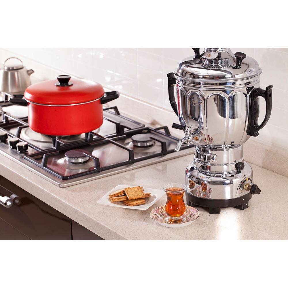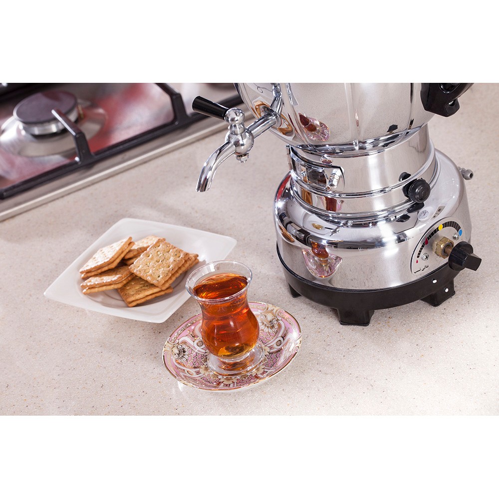 سماور عالی نسب مدل پگاه ساخت کشور ایران می باشد. این محصول گنجایشی به ظرفیت 4 لیتر را دارا می باشد که مناسب هر آشپزخانه ای است. جنس پلاستیک باکالیت دسته های سماور عالی نسب سبب شده است تا در برابر گرما و حرارت مقاومت بالایی داشته باشد.