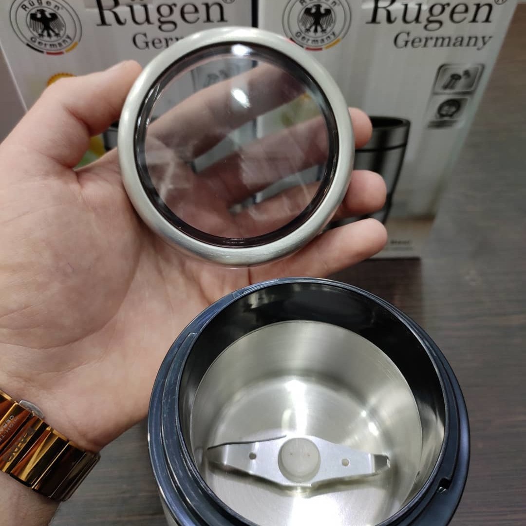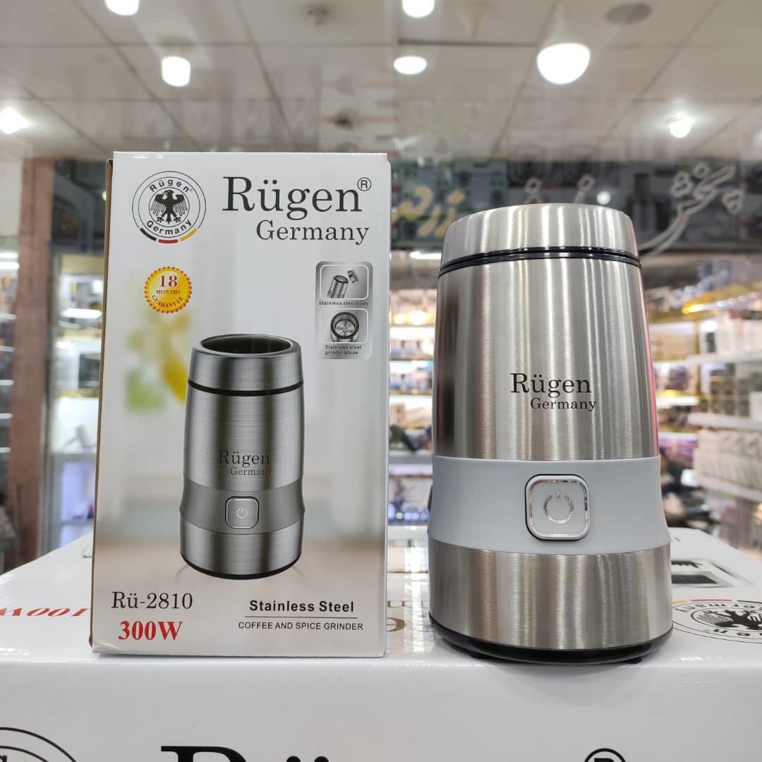 آسیاب قهوه روگن مدل RU 2810 محصولی جدید از برند RUGEN تحت لیسانس آلمان است. این محصول برای دوستداران قهوه انتخابی عالی می باشد چون هم بسیار با کیفیت و با دوام بوده و هم با داشتن آن می توانید خود دانه های قهوه را آسیاب کرده و قهوه های دلخواه خود را با بهترین کیفیت دم کنید. همچنین از آن می توانید برای پودر کردن انواع ادویه های خشک نیز استفاده کنید، کافی است مواد را داخل آن بریزید و دکمه روشن را فشار دهید تا بهترین ادویه را تحویل شما دهد. آسیاب قهوه روگن دارای توان 300 وات بوده و موتور آن در برابر حرارت های بالا بسیار مقاوم است و بر روی موتور آن پروانه هایی قرار داده شده که کار خنک کردن موتور را بر عهده دارند.