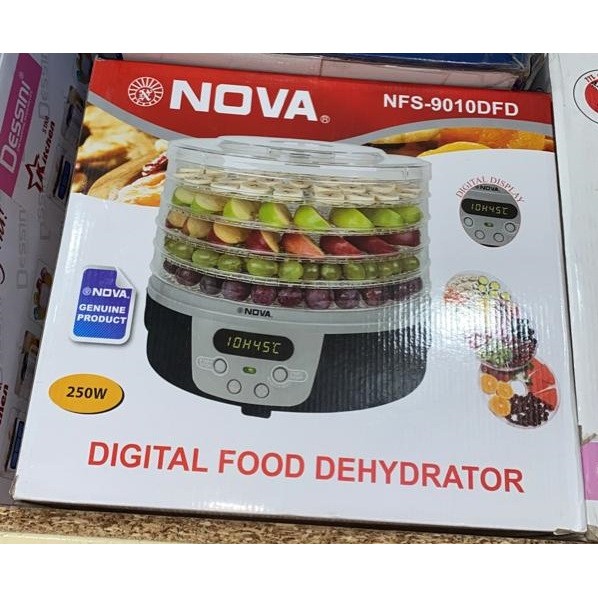 میوه خشک کن نوا مدل NFS-9010DFD از محصولات با کیفیت برند NOVA میباشد. این دستگاه با توان 250 وات به خوبی انواع میوه، سبزی و حتی گل را برای شما خشک خواهد کرد. جنس بدنه میوه خشک کن نوا از جنس پلاستیک بوده و دارای پنج طبقه سینی شفاف با سایز بزرگ میباشد. میوههای برش داده شده به صورت یکنواخت بر روی سینیها قرار داده میشود و با عبور حرارت، میوه با کیفیت خوبی خشک میشود. هر چقدر قطر میوهها (5 میلیمتر) کمتر باشد میوه با سرعت و کیفیت بهتری خشک خواهد شد.