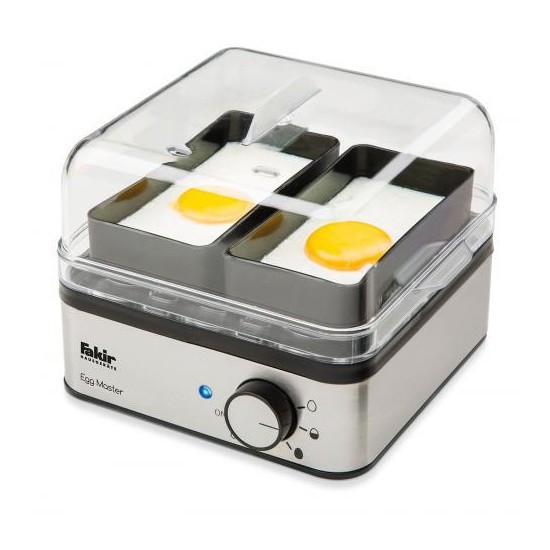 بدنه تخم مرغ پز فکر مدل EGG MASTER از استیل ضدزنگ تولید شده و درپوش بالایی آن از جنس پلاستیک محکم و به صورت شفاف است. تخم مرغ پز Fakir قابلیت تهیه تخم مرغ به دو صورت آب پز و نیمرو را دارد. ظرف مخصوص تهیه نیمرو از جنس پلاستیک، با رویه نچسب و ظرفیت 2 عدد تخم مرغ را دارد و در حالت آب پز می‌توان 8 عدد تخم مرغ را در داخل تخم مرغ پز قرار داد. بر روی بدنه تخم مرغ پز فکر یک دکمه تنظیم چرخشی وجود دارد که از آن برای روشن و خاموش کردن و همچنین تنظیم حرارت کاربرد دارد.