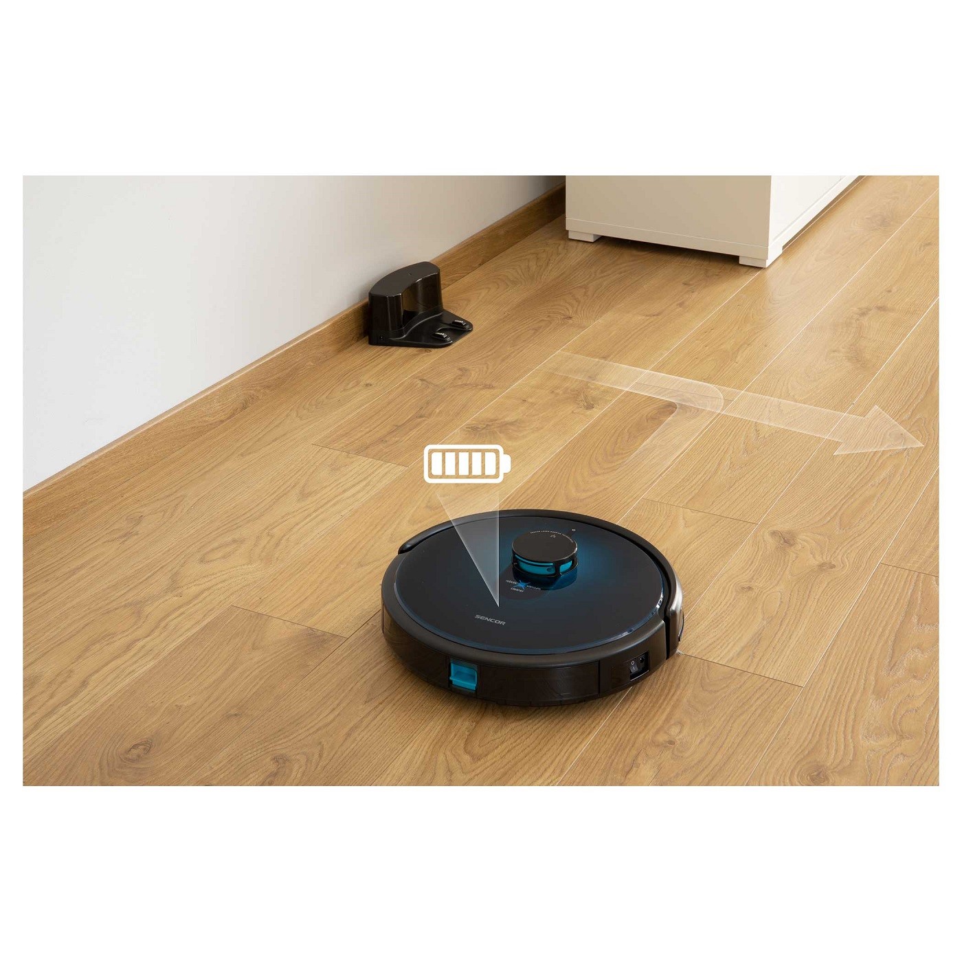 جاروبرقی رباتیک سنکور مدل SRV 9250BK با قابلیت مسیریابی دقیق لیزری (LIDAR)، عملکرد (GYRO MAPPING) برای چرخش موثر در فضا و کنترل از راه دور با استفاده از (Wi-Fi) یک انتخاب هوشمندانه برای تمیز کردن سراسر خانه مانند فرش، موکت، کفی های شناور و پارکت، زیر مبلمان و تختخواب و نیمکت ها و همچنین سرامیک و کاشی است. باتری این دستگاه با ظرفیت بالا و دوام عالی 2600 میلی آمپر ساعت است و به کمک آن می توان مساحتی تا 120 متر مربع را برای مدت نسبتا طولانی، تا 120 دقیقه تمیز کرد.