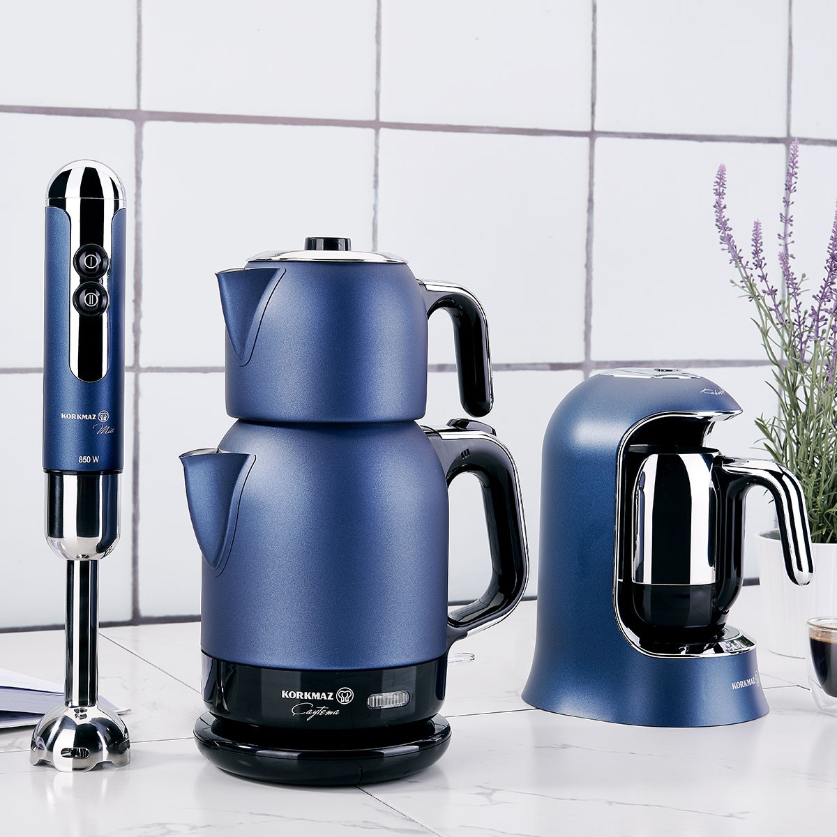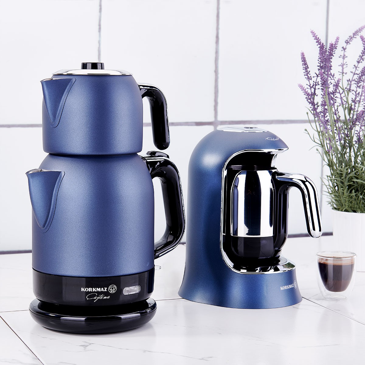 اولین وسیله سرویس 14 پارچه کرکماز کد A1819، چای ساز برقی کرکماز که شامل 4 تکهی کتری، قوری، درب قوری و پایه میباشد. چایساز دارای توان 1600 وات بوده و ظرفیت کلی 2.6 لیتری دارد. کتری چای ساز 1.7 لیتر و قوری آن 0.9 لیتر گنجایش دارند و در هر بار استفاده 20 فنجان چای را آماده میکند. بدنه چایساز کرکماز از استیل ضد زنگ 18/10 ساخته شده است که مقاومت و زیبایی خاصی دارد. از ویژگیهای دیگر چای ساز کرکماز قابلیت گرم نگه داشتن خودکار و سیستم ایمنی قطع خودکار در هنگام تمام شدن آب است.