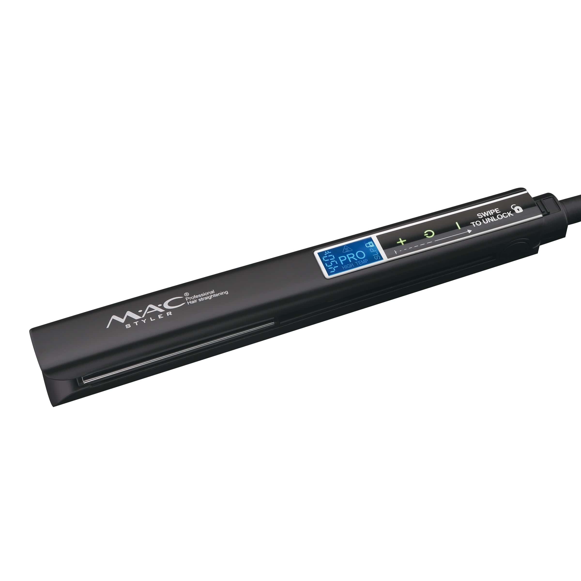 اتو مو MAC Styler MC-2097 دارای نمایشگر LCD برای نمایش میزان دما و قفل یا باز بودن صفحات است. این محصول به وسیله یک صفحه لمسی پایین تر از نمایشگر، قابلیت تنظیم و کنترل دما و خاموش و روشن کردن اتو مو را در اختیار کاربر قرار می دهد. این اتو مو تا 230 درجه سانتی گراد دما را پوشش می دهد که این میزان دما برای مصارف شخصی و استفاده های آرایشگاهی مانند کراتینه تراپی یا ویتامینه کردن مو، بسیار مناسب است.