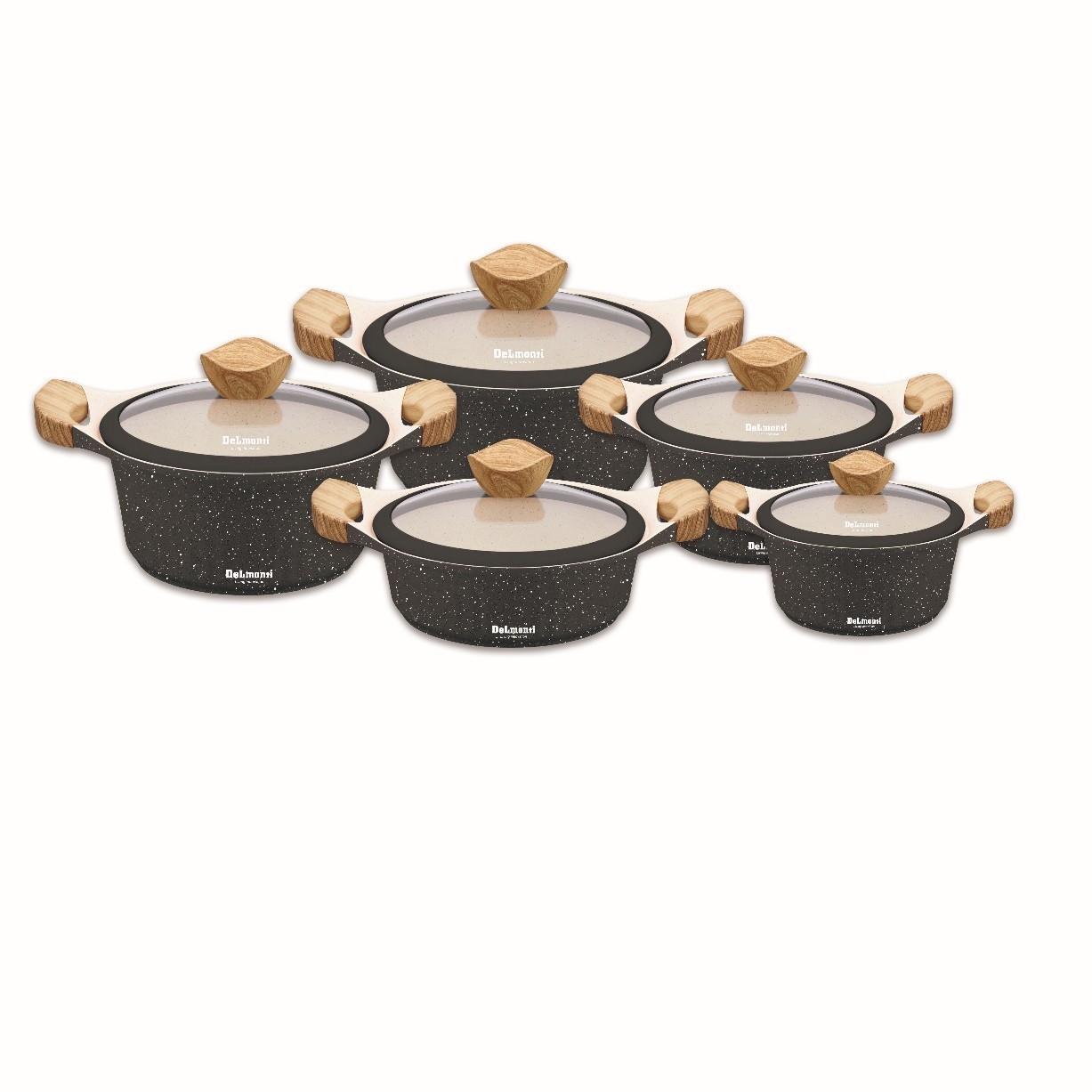 جنس بدنه ی سرویس قابلمه دلمونتی از نانو گرانیت ساخته شده که در برابر ضربه و خراشیدگی بسیار مقاوم و بادوام بوده و شما می توانید با خیالی آسوده تا مدت های طولانی از آن ها استفاده نمایید. همچنین سطح نانو گرانیت سرویس قابلمه مدل 1150 سبب شده تا مواد به راحتی بعد از پخت از آنها جدا شوند. این مجموعه شامل 4 قابلمه در سایزهای (20، 24، 28، 32 سانتی متر) و یک تابه 28 سانتی متری است.
