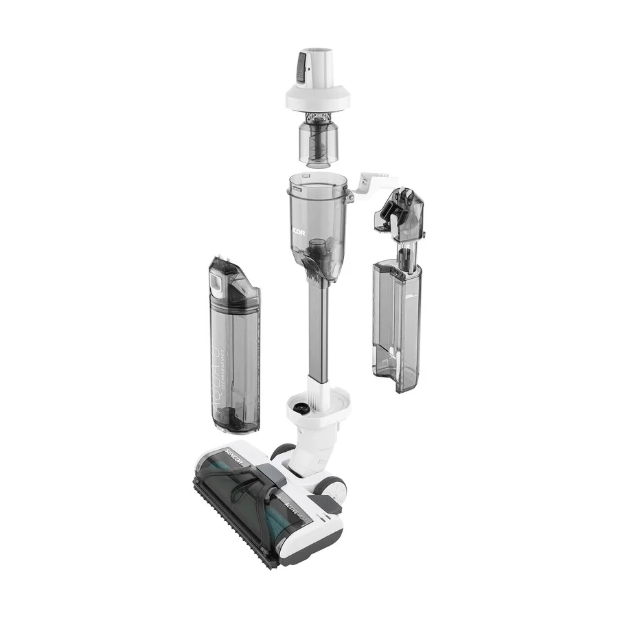 جارو شارژی SENCOR SVC0825WH دارای بدنه ای از جنس پلاستیک با رنگ سفید است که جارویی همه کاره بوده و تمام سطوح مخصوصا چوبی را براحتی تمیز می کند و تحولی بزرگ در زمینه کف شویی انجام داده است. این جارو شارژی دارای سیستم تمام عیار AQUA 8 است که دو مخزن دارد و بصورت مرطوب نیز کار نظافت را انجام می دهد. مخزن آب تمیز آن دارای ظرفیت 0.4 لیتر و مخزن زباله آن 0.5 لیتر ظرفیت دارد. همچنین دارای 2 سطح سرعت بوده که در زمانی که از آن به عنوان جاروبرقی برای زباله های خشک استفاده می کند بتوان از سرعت بالای آن استفاده کرد.