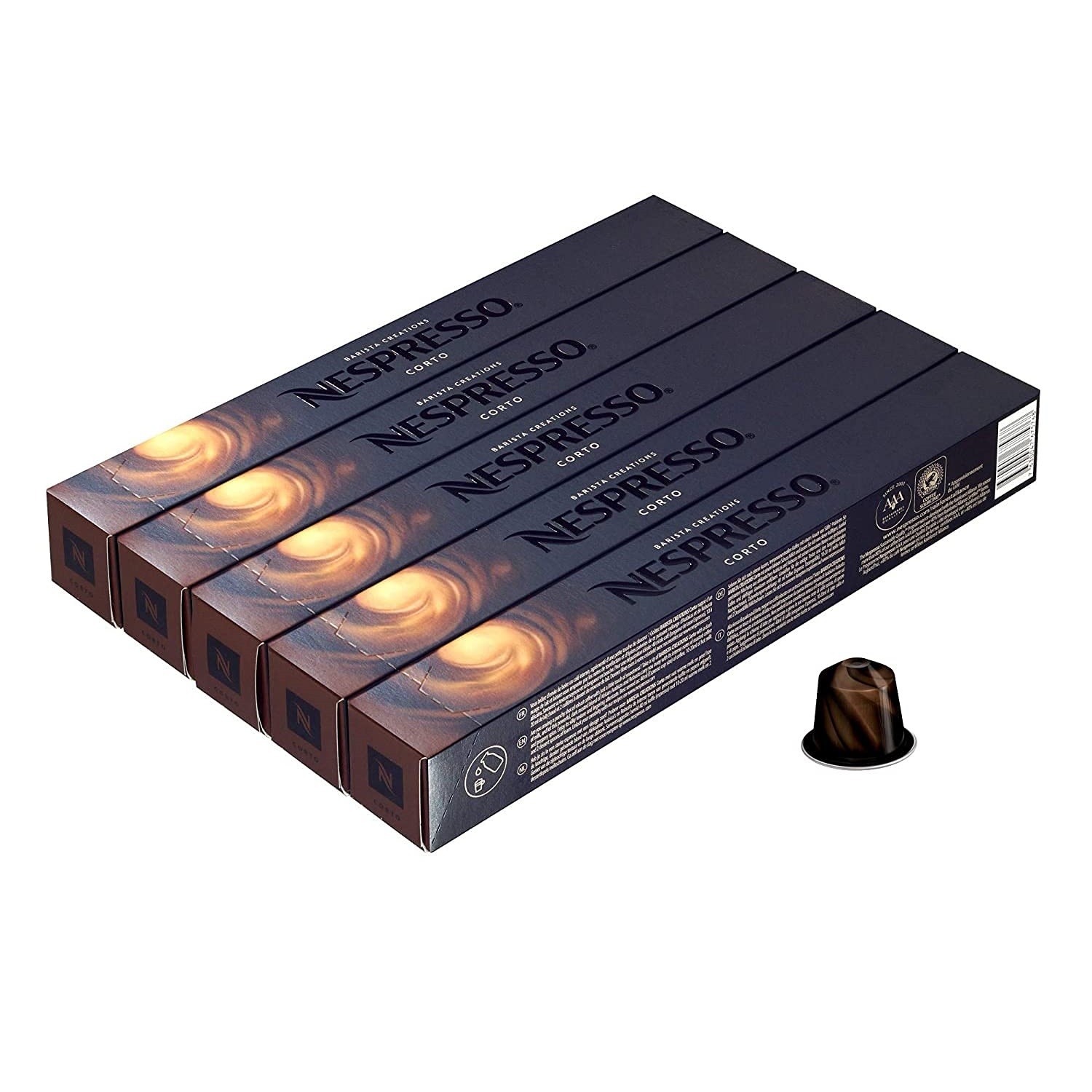 کپسول قهوه نسپرسو مدل Barista Corto با الهام از طعم غلیظ و بافت ضخیم دانه های رست شده به روش باریستاهای متخصص اسپانیایی، که ترکیبی از عربیکای آفریقایی و روبوستا است، ساخته شده. دانه های قهوه این کپسول نسپرسو به مدت طولانی تفت داده شده تا طعم قوی و غالب آن در ترکیب یا شیر نرم تر و کرمی تر شود. اگر از طرفداران نوشیدنی های تلخ و غلیظ هستید و از نوشیدن ریستریتو و کاپوچینو لذت می برید، هر جعبه این ترکیب شما را به 10 فنجان نوشیدنی تلخ، قوی و سنگین میهمان می کند.