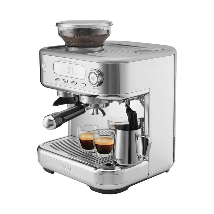 اسپرسوساز سنکور مدل SES 6050SS محصول با کیفیت و کاربردی از برند SENCOR می باشد. این اسپرسوساز دارای طراحی منحصر بفرد و ظاهری زیبا است که با هر دکوراسیونی هماهنگی دارد و مناسب استفاده خانگی، کافی شاپ و رستوران ها بوده و دوستداران قهوه با آن می توانند صفر تا صد دم کردن یک قهوه عالی را انجام دهند.با استفاده از این اسپرسوساز می توانید کاپوچینو و لاته و بخار آب را تهیه کنید. اسپرسوساز سنکور دارای آسیاب قهوه بوده که در بالای دستگاه قرار دارد و ظرفیت 250 گرم دانه قهوه را دارا می باشد. این آسیاب به شکل مخروطی بوده و دارای تیغه هایی از جنس فولاد ضد زنگ است. همچنین دارای 15 درجه درشتی و نرمی آسیاب قهوه است و با توجه به نیاز و سلیقه خودتان آن را آسیاب کنید.