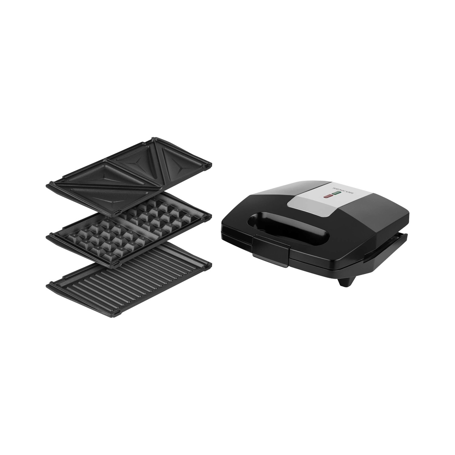 دستگاه ساندویچ ساز و گریل سنکور مدل SSM9410SS دارای سه جفت صفحه متفاوت و جدا از هم به ابعاد 12.6x 23 سانتی متر می باشد که جنس تمامی صفحات از تفلون است که هر کدام به منظور کار خاصی طراحی شده اند؛ به عنوان مثال از صفحات گریل برای کباب کردن و گریل کردن گوشت استفاده می شود که برای این منظور بر روی صفحه، شیارهایی ایجاد شده است. همچنین سینی وافل که به شکل مربعی می باشد و از آن می توان برای تهیه بیسکویت خانگی استفاده کرد. در آخر سینی ساندویچ ساز و اسنک که دارای قسمت های مثلث شکل می باشد.