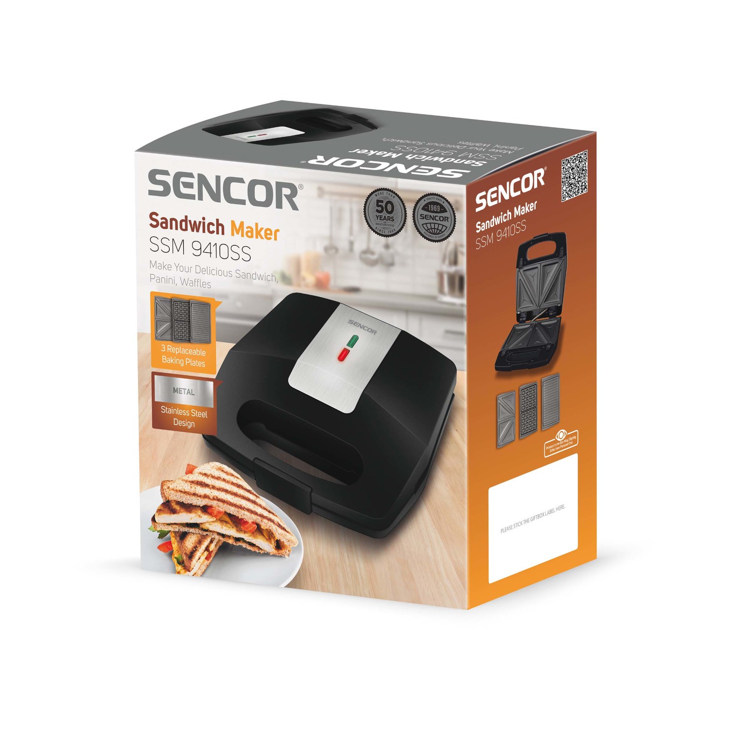 ساندویچ ساز سنکور مدل SSM 9410SS توانی معادل 700 وات دارد که دستگاه می تواند در مدت زمان کوتاهی آماده به کار شود. این ساندویچ ساز 3 کاره است یعنی قابلیت تهیه ی اسنک، وافل و گریل کردن را دارد.