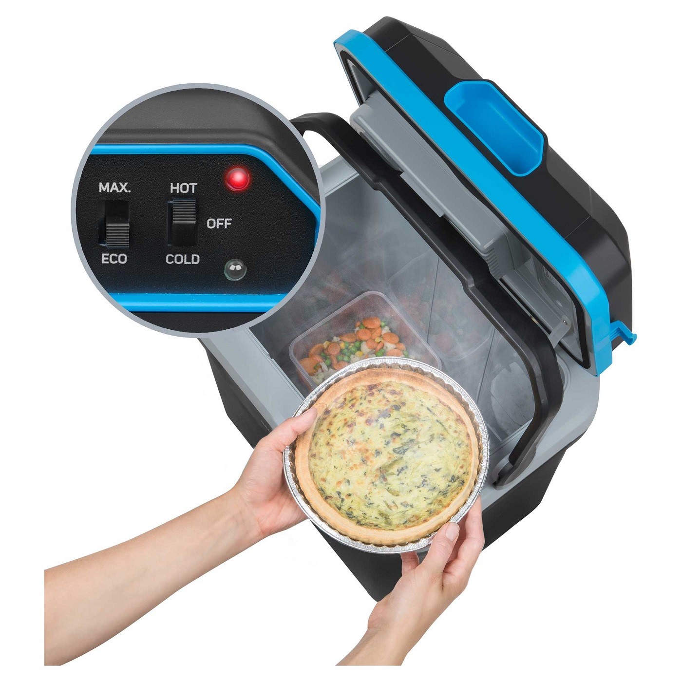 یخچال ماشین Sencor مدل SCM 2224BL مجهز به هر دو سیستم خنک کننده و گرم کننده است. سیستم سرمایشی تا 18 درجه سانتی گراد زیر دمای محیط است و گرمایی تا 60 درجه سانتی گراد را هم ارائه دهد. همچنین با حالت ECO هنگام تغذیه از برق 230 ولت (خنک شدن با رسیدن 12 درجه سانتی گراد متوقف می شود) نه تنها می توانید غذا را در دمای دلخواه نگه داری کنید؛ بلکه باعث صرفه جویی در مصرف برق خواهد شد. وجود عایق با کیفیت در دستگاه باعث جلوگیری از خروج هوای سرد و گرم از دیوارها می شود. تمامی تنظیمات سرمایشی و گرمایشی با چراغ LED رنگارنگ بر روی بدنه قابل مشاهده است.