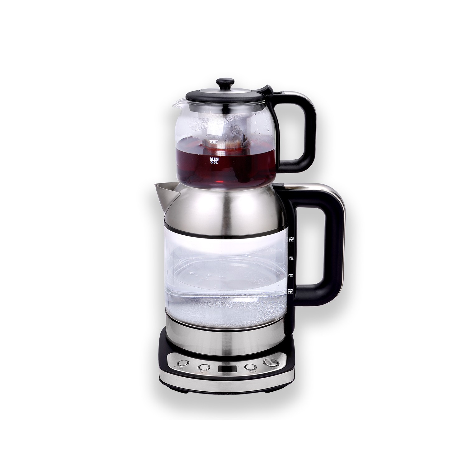 قوری چای ساز Delmonti DL440 دارای فیلتر تفالهگیر از جنس استیل ضد زنگ بوده که در داخل آن قرار میگیرد. کتری و قوری مدرج میباشند و شما با توجه به نیاز خود میتوانید آنها را پر کنید. در صفحه جلویی چای ساز پنل کنرلی شمال چهار دکمه فشار و یک صفحه نمایش LED تعبیه گردیده است که برای تنظیمات مختلف دستگاه کاربرد دارند. از ویژگیهای دیگر چای ساز مدل DL440 دلمونتی میتوان به قابلیت گرم نگه داشتن خودکار و چرخش 360 درجه کتری اشاره کرد.