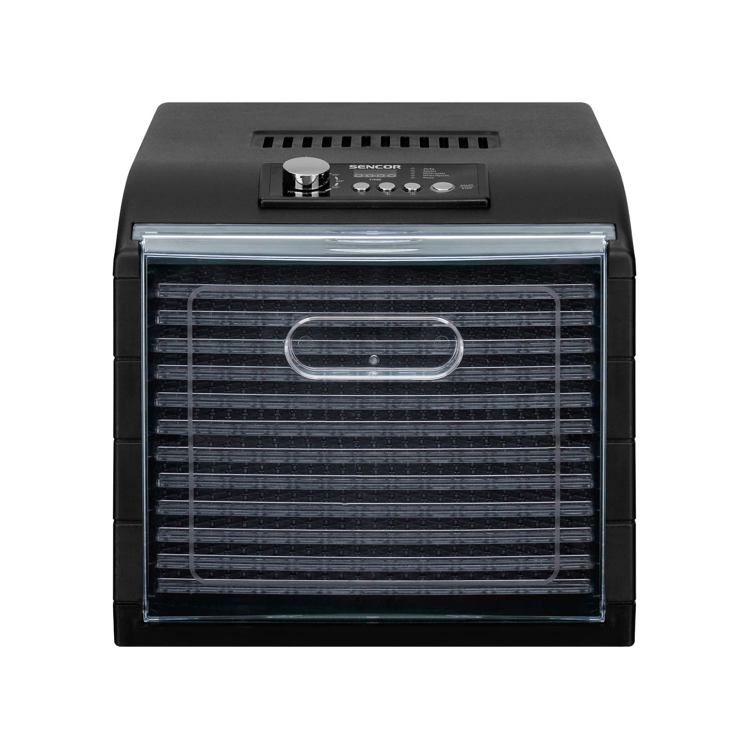 میوه خشک کن سنکور مدل SFD6600BK دارای ۵ برنامه اتوماتیک خشک کردن است. این برنامه ها برای خشک کردن مواد خاصی چون سیب، قارچ، ماکارونی، گیاهان (ادویه) و جرکی (Jerky) می باشد. بر روی بدنه ی این دستگاه یک ولوم چرخشی قرار دارد که با آن می توان دمای دستگاه را به دلخواه تنظیم کرد. در سمت راست پنل دکمه ای وجود دارد که در بغل آن به انگلیسی کلمه (start/stop) قید شده که شروع به کار و توقف دستگاه را با آن می توانید انجام دهید. دو دکمه ی دیگر در وسط پنل با علامت (+/-) وجود دارد که می توانید زمان مورد نظر را برای مواد مشخص نمایید و همچنین یک دکمه ی دیگر در کنار آنها قرار داده شده که برای انتخاب برنامه های از پیش تعیین شده دستگاه استفاده می گردد.