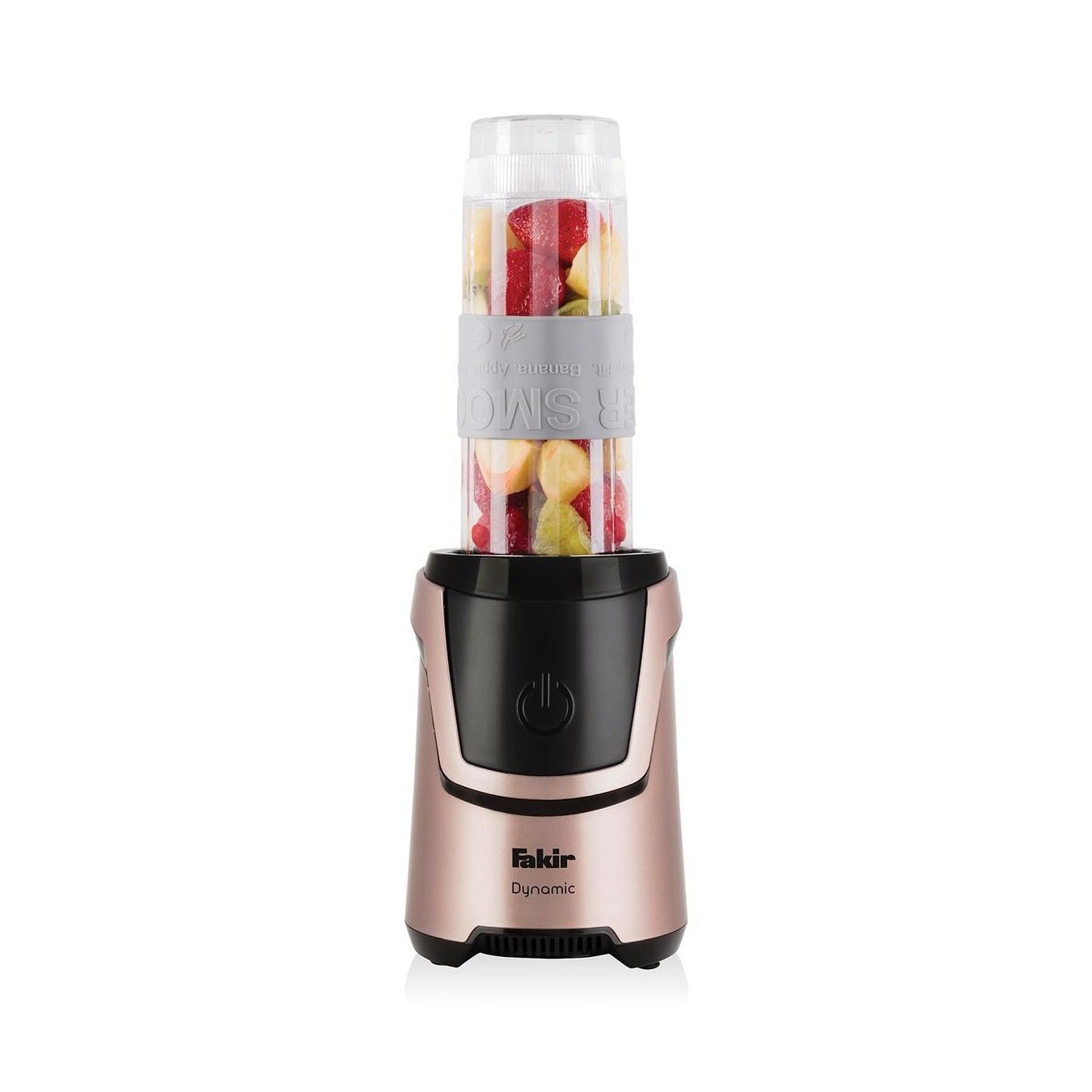 بطریهای اسموتی ساز Fakir Dynamic دارای گنجایش 400 و 570 میلیلیتر هستند که از آنها برای تهیه و نگهداری نوشیدنیها استفاده میگردد. هر کدام از بطریها دارای درب مخصوص به خود بوده که جهت حمل راحتتر مجهز به دستگیره حمل شدهاند. این دستگاه دارای چهار عدد تیغه از جنس استیل ضد زنگ بوده که با کارایی عالی، میتوانند حتی یخ را نیز خرد کنند.