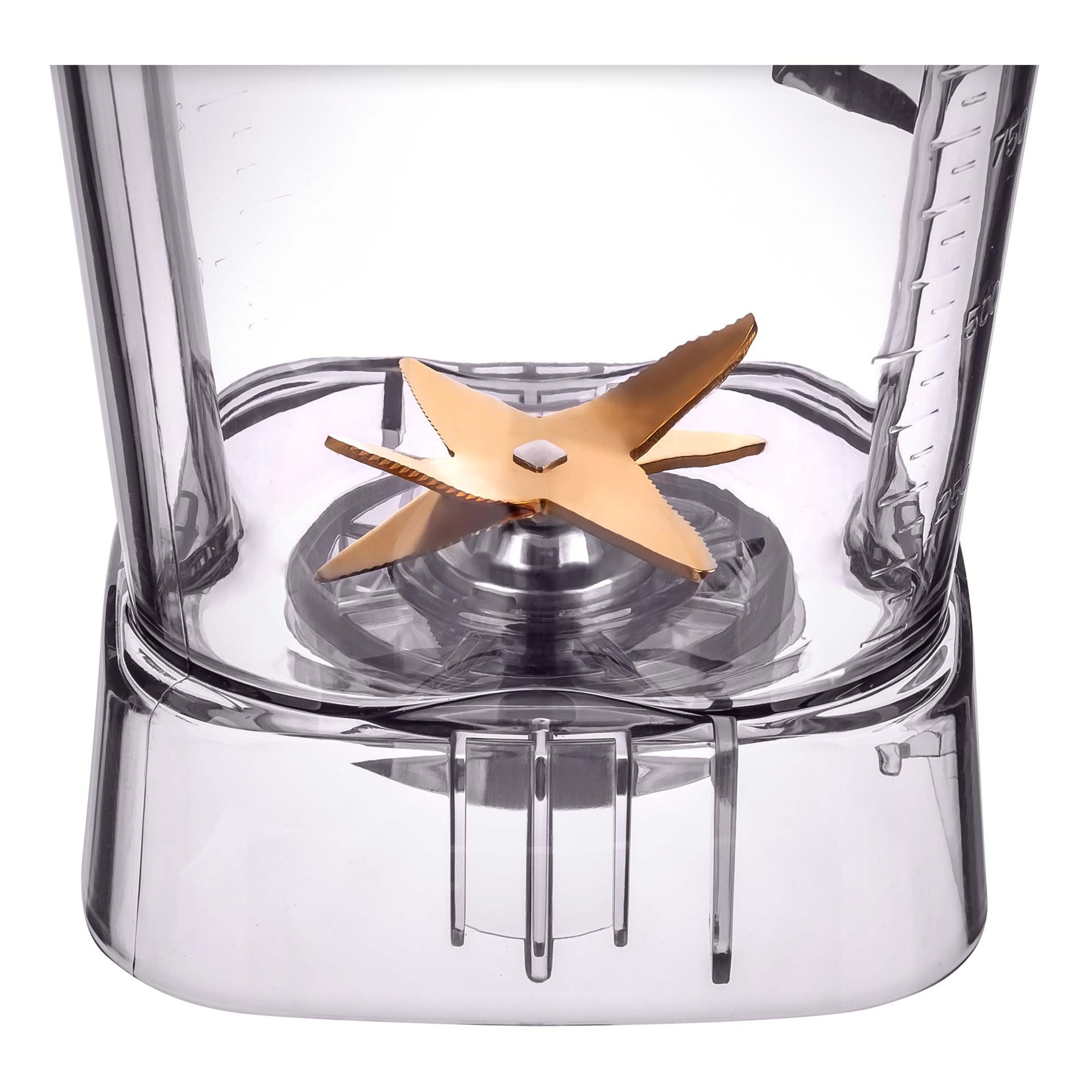 مخلوط کن SENCOR SBU 7790NP مجهز به پارچ شفاف 2 لیتری مدرج و از جنس تریتان و نشکن است که طعم و بو را جذب نمی کند. تیغه های 6 پره این دستگاه که به صورت اره ای و ترکیبی طراحی شده اند، از جنس استیل ضد زنگ و دارای روکش تیتانیوم LVD درجه یک هستند. از طریق دریچه مخصوصی که روی درپوش پلاستیکی این مخلوط کن تعبیه شده، می توان به آبمیوه، شکر یا سایر مواد مورد نیاز را اضافه کرده و نوشیدنی با طعم دلخواه را درست کرد.