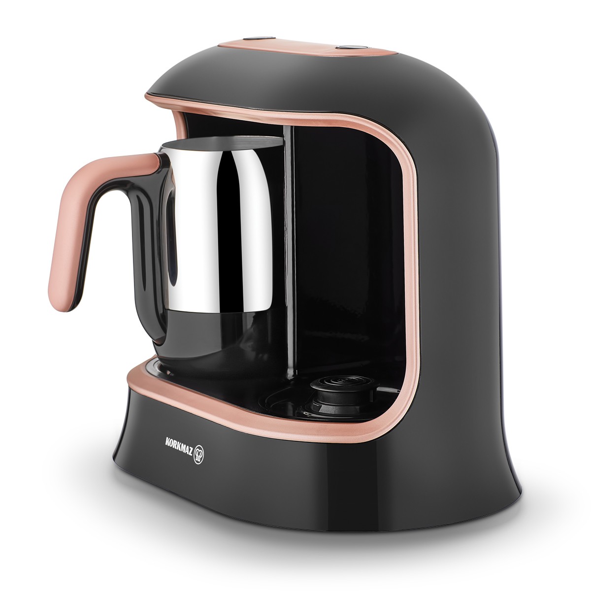 قهوه ساز مدل A861 کرکماز مجهز به سیستم قطعکن خودکار میباشد و بعد از آماده شدن قهوه ترک، قهوه ساز به طور اتوماتیک خاموش خواهد شد. یکی از محاسن ویژه قهوه ساز Korkmaz Kahvekolik A 861 تعادل حرارتی (Thermo Balance) میباشد. این ویژگی کمک خواهد که قهوه ساز با قدرت کمتری کار کند و رایحه دانه قهوه و طعم ویژه قهوه ترک حفظ گردد و قهوهای خوشمزهای را با عزیزان خود بنوشید. جنس لیوان این قهوه ساز از استیل ضد زنگ میباشد و در مقایسه با قهوه سازهایی که دارای لیوان پلاستیکی و یا آلومینیومی میباشند سالمتر خواهد بود. همچنین لیوان قهوه ساز برای استفاده آسان به یک دسته با طراحی ارگونومیک مجهز شده است.