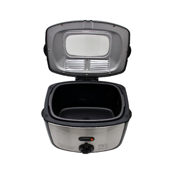 کاسه سرخ کن Delmonti DL630 دارای سطوح نچسب بوده و مواد غذایی به آن نخواهد چسبید. کاسه به راحتی قابل جدا شدن بوده و شستشو داده خواهد شد. در پنل جلوی سرخ کن ولوم چرخشی وجود دارد که برای خاموش/روشن کردن دستگاه و همچنین تنظیم دمای آن کاربرد دارد. دما را میتوان تا 190 درجه سانتیگراد تنظیم کرد. دمای مورد نیاز برای برای پخت انواع مختلف غذا بر روی بدنه دستگاه مشخص گردیده که شما میتوانید از آن برای پخت و پز خود کمک بگیرید.