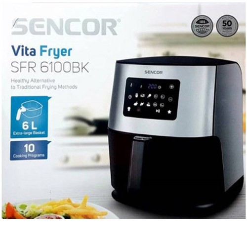 از دیگر ویژگی این دستگاه Sencor SFR 6100BK Fryer می توانیم به صفحه ی نمایشگر ال ای دی (LED) اشاره کنیم که شامل 10 برنامه ی کاربردی است و شما به کمک آن می توانید تمام حالتهای سرخ کن را مشاهده نمایید و به وسیله ی لمس انگشتانتان حالت مورد نظر خود را انتخاب کنید. جنس بدنه ی این دستگاه از پلاستیک بوده و رنگ بدنه ی این مدل سرخ کن همه کاره ی سنکور مشکی و نقره ای می باشد که جذابیت و زیبایی منحصر به فردی به آن بخشیده است.