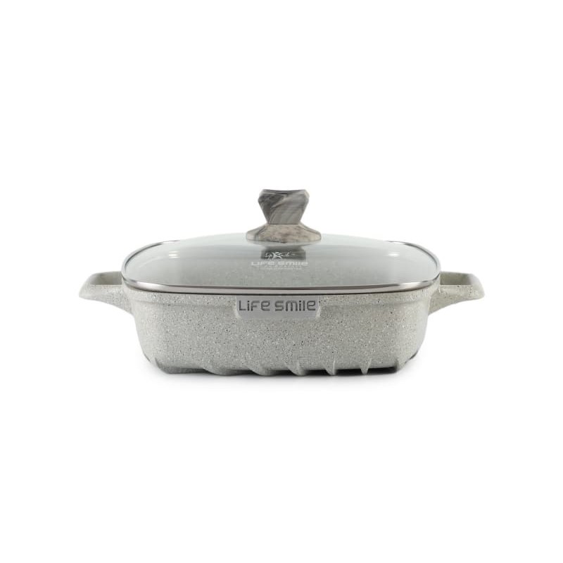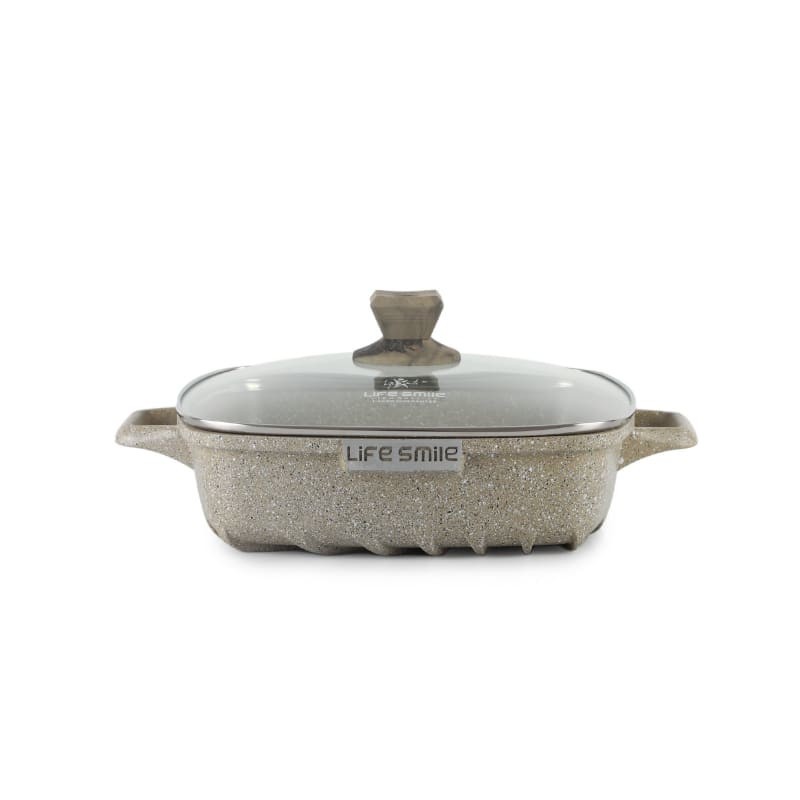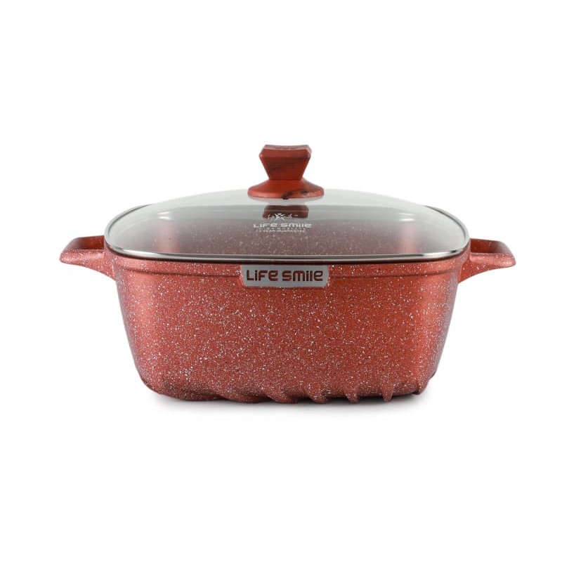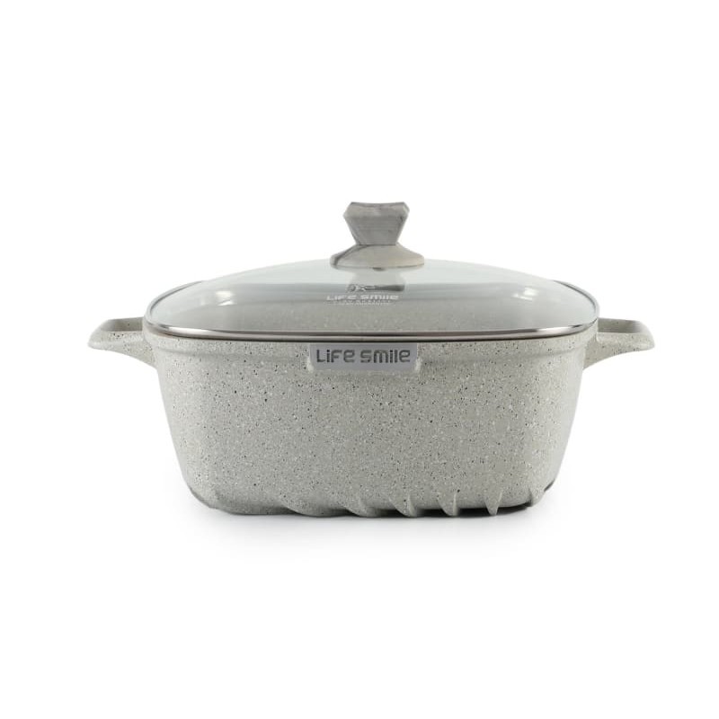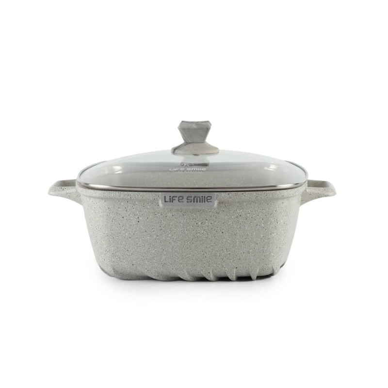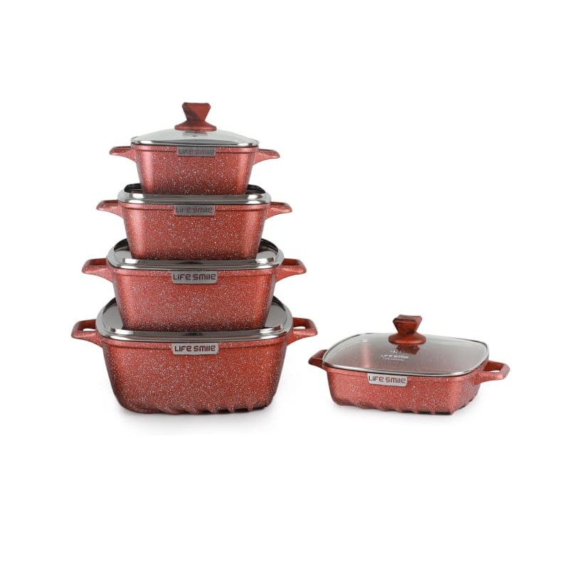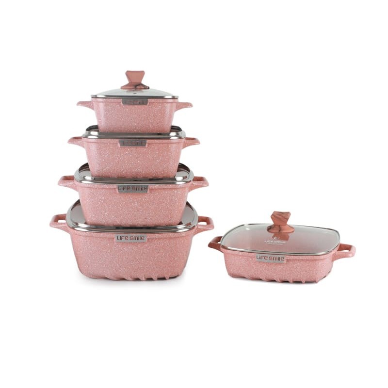 سرویس قابلمه گرانیتی لایف اسمایل مدل SPF 10 یکی دیگر از محصولات برند معروف لایف اسمایل است. این سرویس دارای 10 پارچه شامل 4 عدد قابلمه در سایزهای 20، 24، 28 و 32 سانتی متر و یک ماهیتابه 28 سانتی متری می باشد. بدنه اصلی این ست از آلومینیوم ریختهگری ساخته شده که رسانای بسیار خوبی بوده و در برابر حرارت های بالا تا 240 درجه سانتی گراد مقاوم است. این سرویس قابلمه لایف اسمایل دارای روکشی نچسب از جنس گرانیت است که باعث می شود هیچ ماده غذایی به آن نچسبد و عمل شستشو را تا حد امکان راحت می کند.