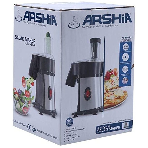 سالادساز ARSHIA SL110 2172 از توان 350 وات برخوردار بوده و با داشتن 3 عدد دیسک و 2 عدد تیغه مواد مختلف را تکه تکه، خرد، رنده و رشته رشته خواهد کرد. دهانه ورودی سالادساز بزرگ بوده و برای انواع مواد مختلف قابل استفاده میباشد. سالادساز عرشیا دارای سیستم قفل ایمنی در هنگام کار کردن میباشد که ایمنی کاربر را بالا میبرد. همچنین برای شستشو قطعات مختلف دستگاه میتوان از ماشین ظرفشویی نیز استفاده کرد.