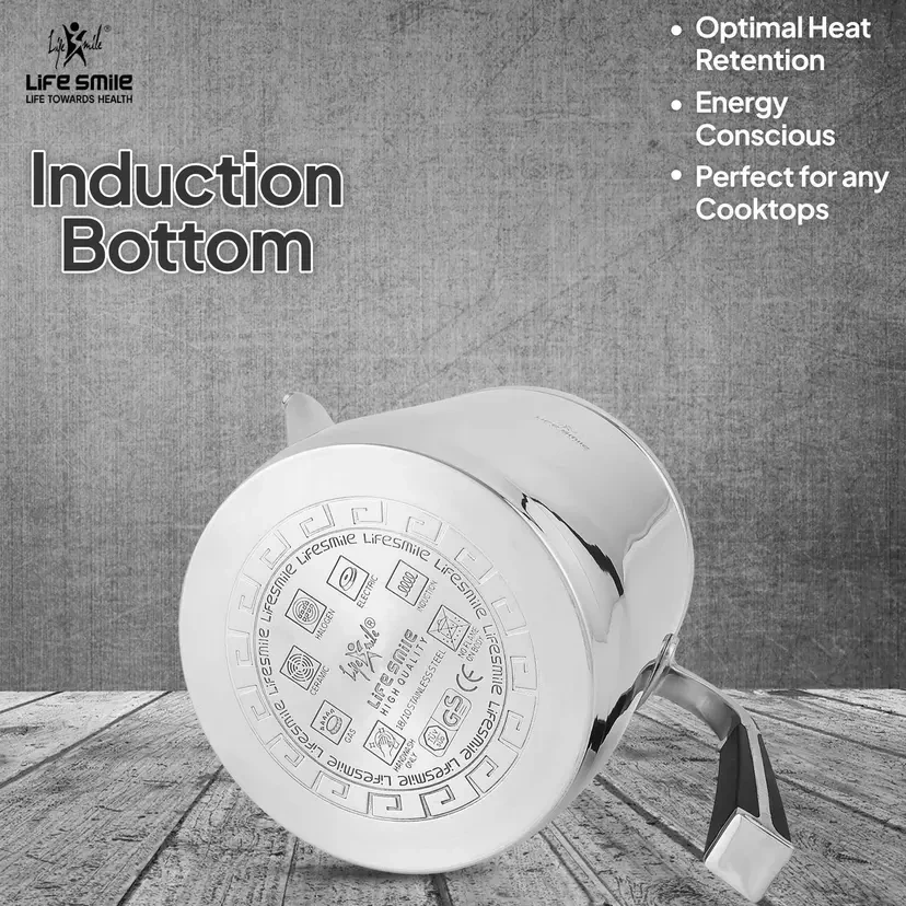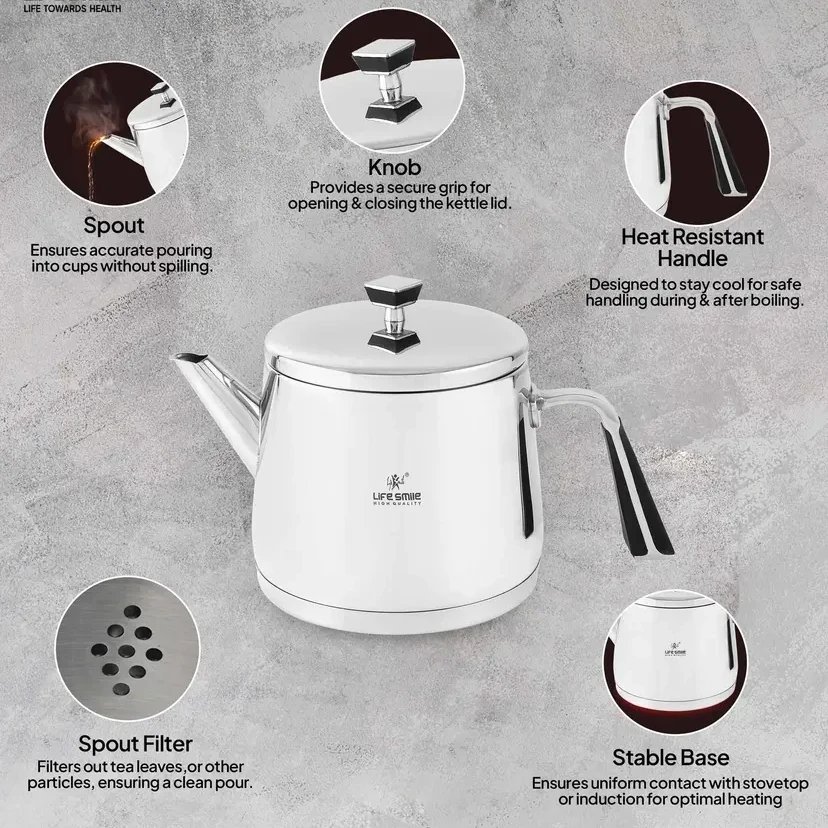 دسته و دستگیره درب کتری LIFE SMILE TK1-4 از جنس استیل و باکالیت هستند و همیشه خنک می مانند و به دست آسیب نمی رسانند و هر دو دارای طراحی ارگونومیک هستند که استفاده از این کتری را آسان می کنند. کفه این کتری دارای پایه القایی است که قابل استفاده بر روی انواع اجاق ها بوده و در کمترین زمان حرارت را به تمام نقاط کتری می رساند و باعث می شود آب زود به جوش آید.