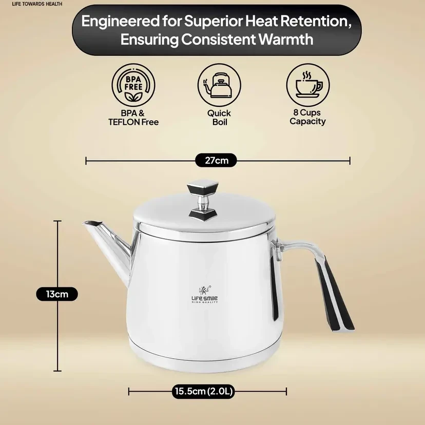 کتری لایف اسمایل مدل TK1 4 محصول جدید برند زیبا و نام آشنای LIFE SMILE است. این کتری دارای طراحی شیک و مدرن بوده و با گنجایش 2 لیتر مناسب مصارف خانگی است. جنس بدنه کتری لایف اسمایل از استیل ضد زنگ 10\18 ساخته شده که ضد خط و خراش بوده و در مقابل حرارت بالا بسیار مقاوم است. دهانه خروجی کتری به گونه ای طراحی شده که آب به آسانی و تمیزاز آن خارج شود و همچنین مجهز به فیلتر بوده تا موقع ریختن چای تفاله ها به داخل فنجان ریخته نشوند.