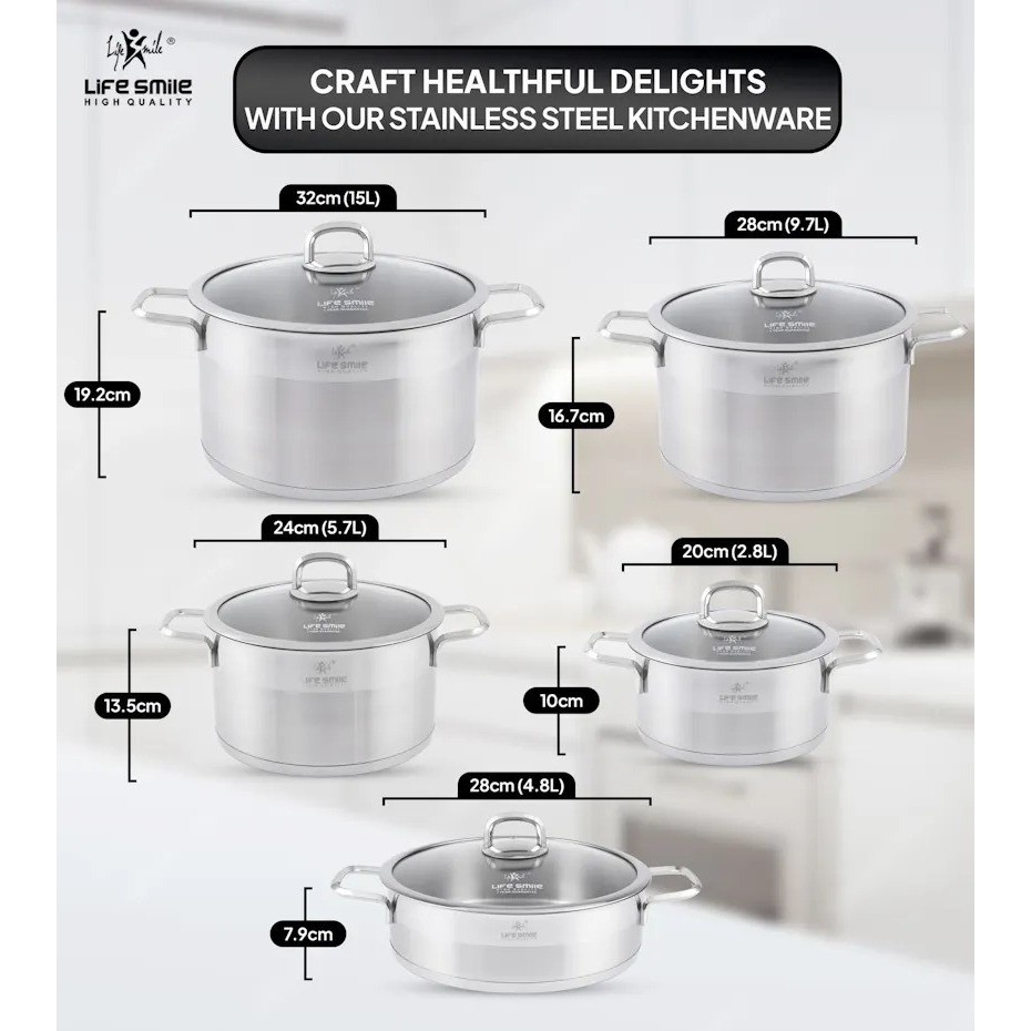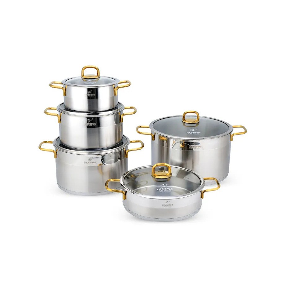 سرویس قابلمه استیل لایف اسمایل مدل Lifep12 شامل 10 پارچه - Lifesmile Steel Cookware Set Lifep12 10