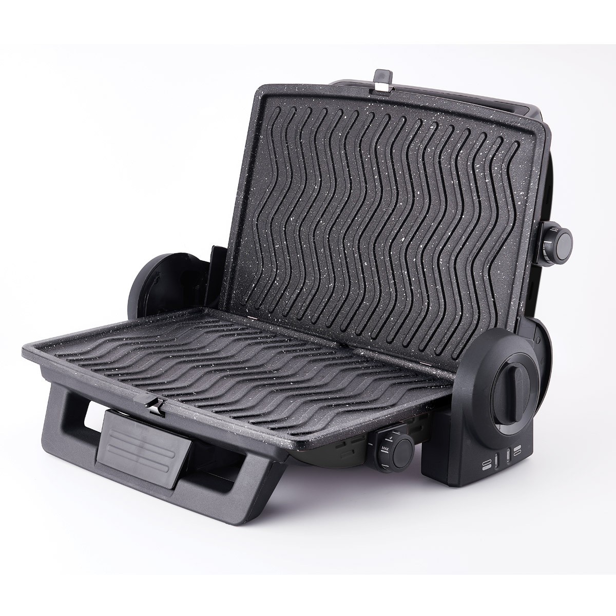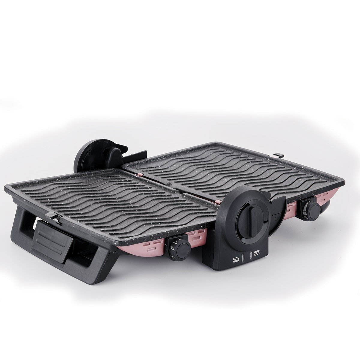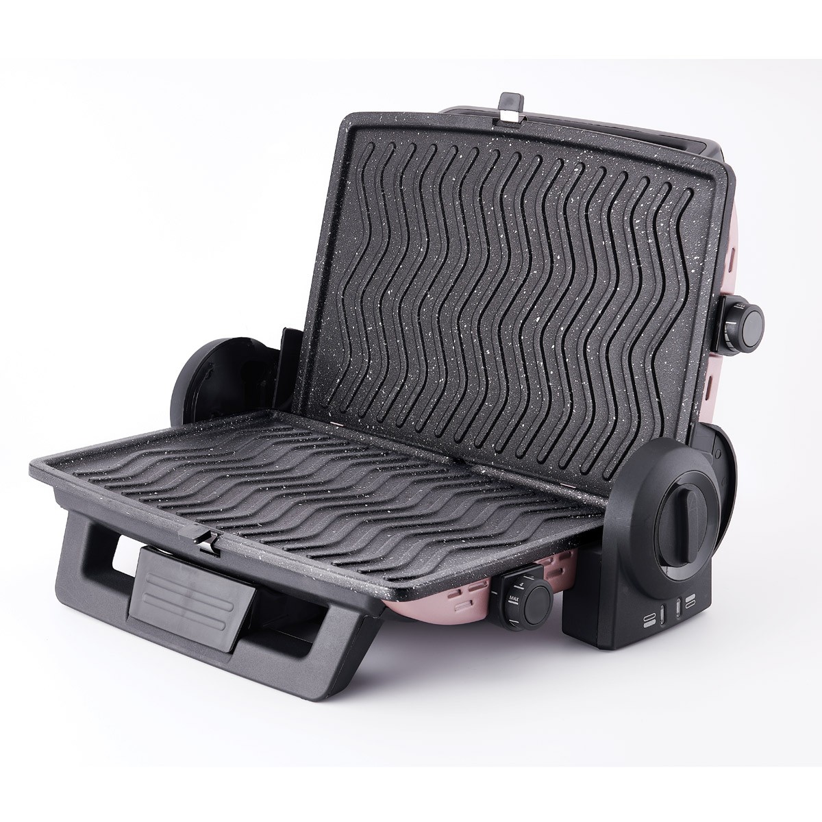 گریل گرانیتی کرکماز مدل A310 یکی دیگر از محصولات زیبا و با کیفیت برند کرکماز ساخت کشور ترکیه است که در دو رنگ مشکی و رزگلد تولید شده است. جنس بدنه این محصول از آلومینیوم دایکاست می باشد که در برابر حرارت مقاومت بالایی دارد و دارای دستگیره های حرارتی است که استفاده از آن را راحت می کند و هنگام استفاده دست شما را نمی سوزاند. این محصول برای گریل کردن انواع گوشت ها و سبزیجات و درست کردن ساندویج استفاده می شود و دارای 2 صفحه از جنس آلومینیوم با روکش گرانیتی است که نچسب بوده و به همین دلیل هیچ ماده غذایی به آن ها نمی چسبد و به دلیل جدا سازی به آسانی تمیز می شوند. این صفحات به دلیل قفل کاور بالایی قابلیت تنظیم ارتفاع داشته و بصورت 180 درجه هم نیز باز می شوند که کارایی آن ها را بیشتر می کند و دمای هر صفحه جدا گانه با ولوم چرخشی که در پایین آن ها قرار دارد تنظیم می شود که می توان بر روی هر کدام ماده غذایی خاصی با دمای متفاوت گریل کرد.