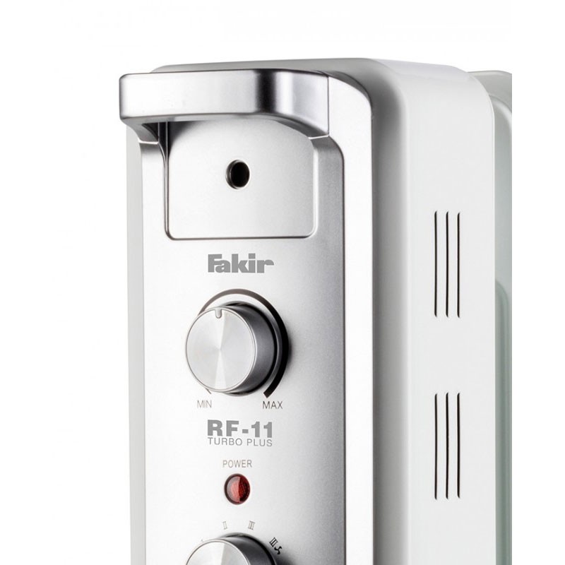 رادیاتور روغنی فکر مدل RF-11 TURBO PLUS برای گرم کردن محیط و ایجاد آرامش شما و عزیزانتان در روزهای سرد زمستان تولید شده است. این محصول دارای ویژگیهای زیادی است که آن را به یک دستگاه مورد پسند و پرکاربرد تبدیل کرده است. رادیاتور Fakir دارای 11 پره بوده و در چهار سطح گرمایش 1000، 1500، 2500 و 2900 وات قابل تنظیم خواهد بود. این دستگاه با توزیع متعال گرما، گرم بودن یکسان تمام اتاق را تضمین میکند. سطح صدای رادیاتور بسیار کم است که راحتی و آرامش را برای کاربر به همراه دارد. ترموستات قابل تنظیم به شما کمک کرده تا دمای محیط را در حالت دلخواه نگه دارید.