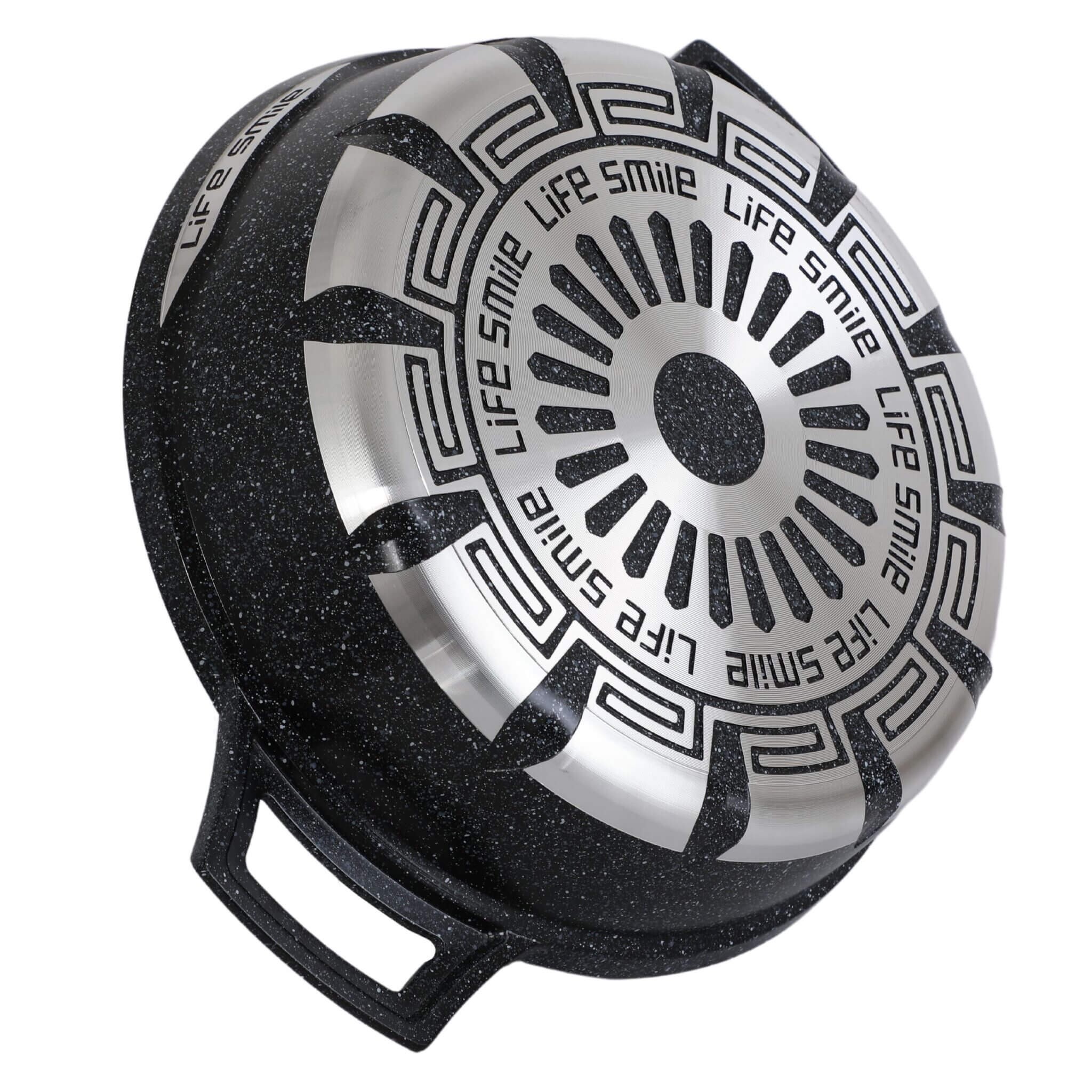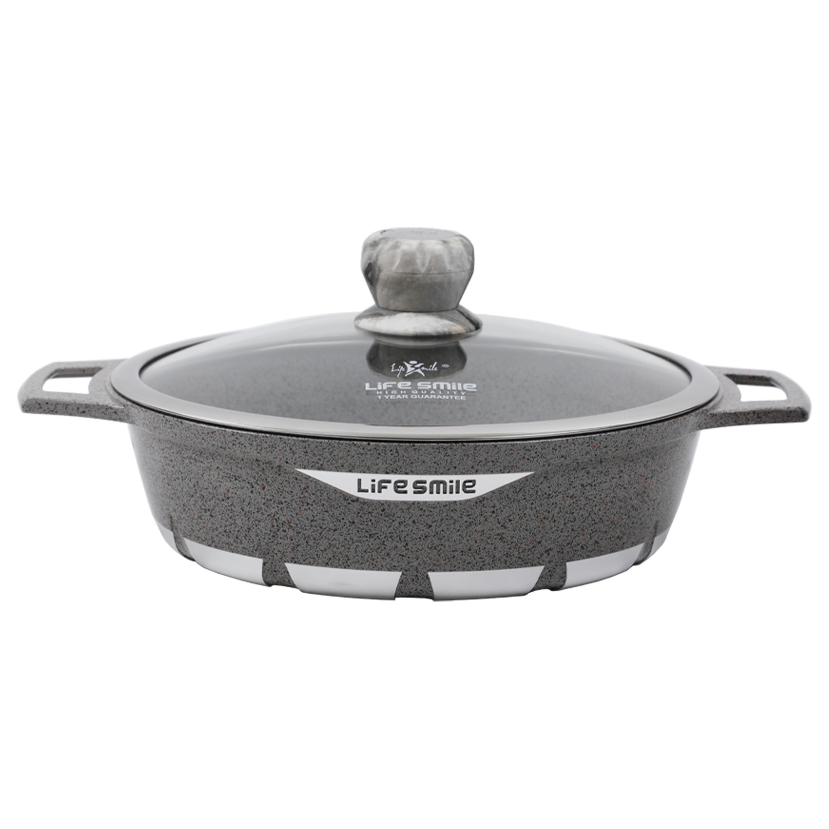 تابه گرانیتی لایف اسمایل مدل FLCMSHR40 با طراحی زیبا و کیفیتی عالی به شما برای یک پخت و پز لذیذ کمک خواهد کرد. بدنه تابه لایف اسمایل از آلومینیوم ریختهگری شده با روکش گرانیتی به بازار عرضه شده است. استفاده از جنس آلومینیوم در ساخت این محصول موجب انتقال بهتر و توزیع یکنواخت حرارت در هنگام پخت غذا میشود. تابه سایز 40 لایف اسمایل هیچگونه گاز مضر PFOA را تولید نخواهد کرد و همچنین دارای سطح نچسب میباشد که مزیت بسیار عالی خواهد بود.
