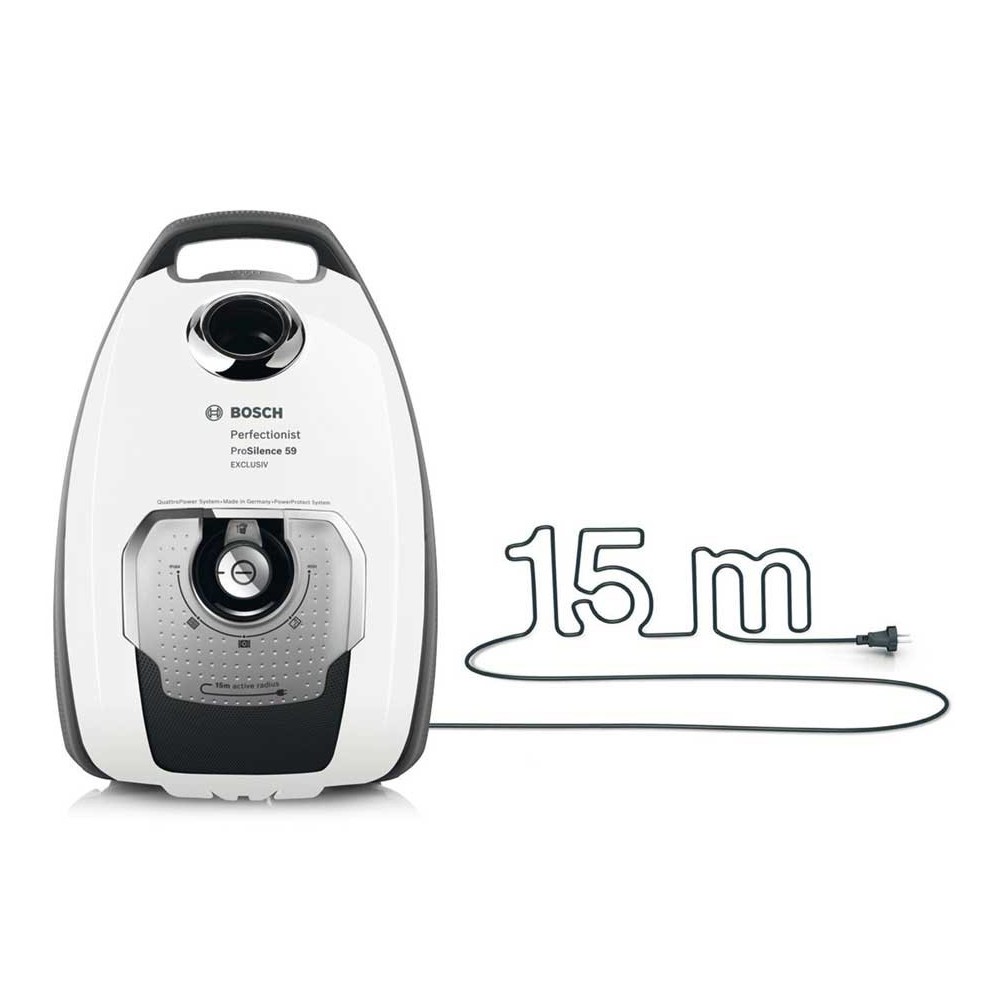 جارو برقی Bosch مدل silm1 دارای کیسه ای با ظرفیت 5 لیتر است که با توجه به ظرفیت زیادی که دارد می تواند مقدار زیادی زباله را جمع آوری کند و تخلیه مجدد کیسه را به تعویق بیندازد و دارای نشانگر تخلیه کیسه می باشد. فیلتر استفاده شده در این مدل جارو برقی بوش، فیلتر HEPA می باشد که قابل شستشو بوده و در قسمت خروجی دستگاه نصب شده است که از انتشار گرد و غبار و ذرات آلرژی زا به محیط جلوگیری می کند و باعث می شود تا 99.95 درصد هوایی پاکیزه تر و بدون آلایندگی در محیط اطراف در جریان باشد. تنظیمات سرعت مکش آن به وسیله یک ولوم چرخشی که روی آن تعبیه شده از min تا max قابل تغییر است.