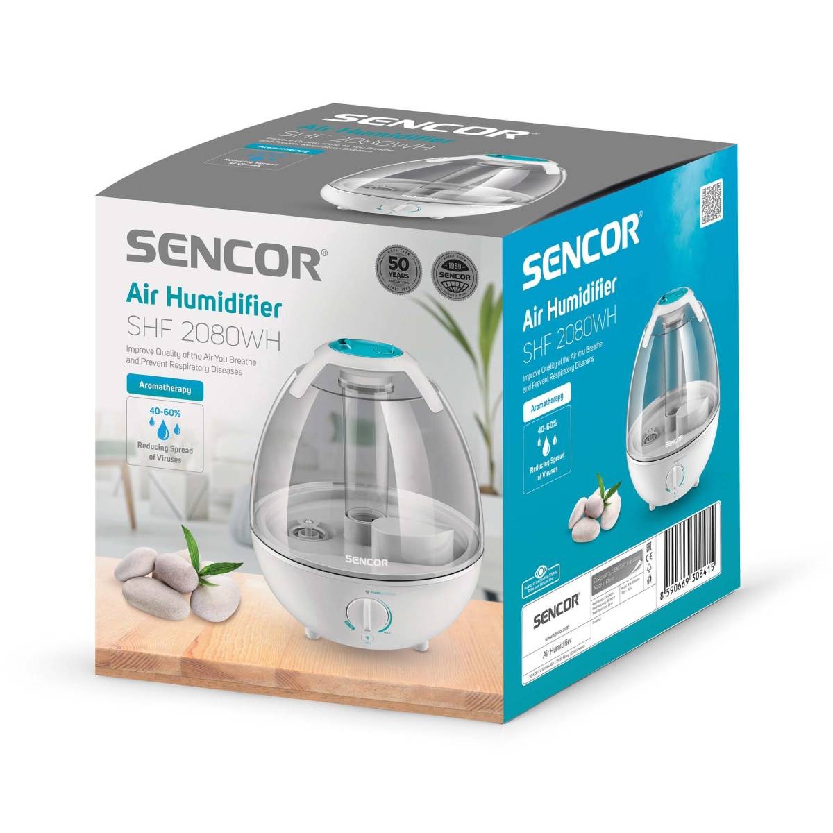 جنس بدنه بخور سرد سنکور SHF 2080WH از پلاستیک مرغوب و مقاوم ساخته شده است و شرکت سازنده توجه چشم گیری به ظاهر دستگاه داشته است و آن را فوق العاده شیک و بیضی شکل به رنگ سفید طراحی کرده است. روی بدنه دستگاه یک ولوم چرخشی تعبیه شده است که با استفاده از آن می توانید عملکرد دستگاه را تنظیم کنید. از دیگر خصوصیات این دستگاه بخور سرد می توان به پایه ضد لغزش، نور شب 7 اتمسفر، وزن سبک 1.7 کیلوگرم و طول سیم برق 1.5 متر اشاره کرد.