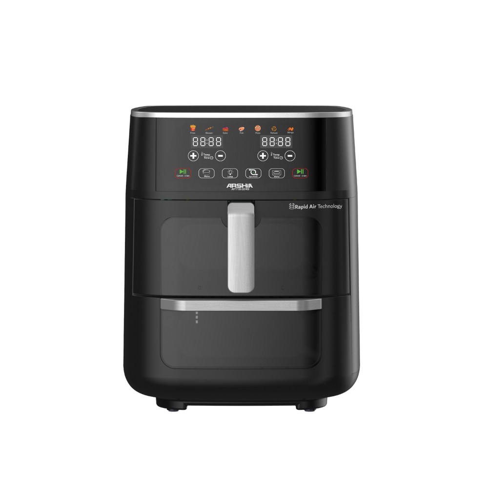 ARSHIA AF118-3249 دارای توان 1850 وات است و دارای سیستم پخت 360 درجه ای بوده که بدون زیر و رو کردن غذا آن را آماده می کند. این سرخ کن مجهز به پنل لمسی می باشد که در آن 7 برنامه غذایی پیش فرض و همچنین تنظیم دما و زمان به صورت دستی برای غذاهای دلخواه قرار داده شده است. از دیگر ویژگی های جالب این محصول سیستم SYNC FINISH است که می توانید هر دو قسمت بالا و پایین سرخ کن را هم زمان تنظیم کنید و با هم به اتمام برسند.