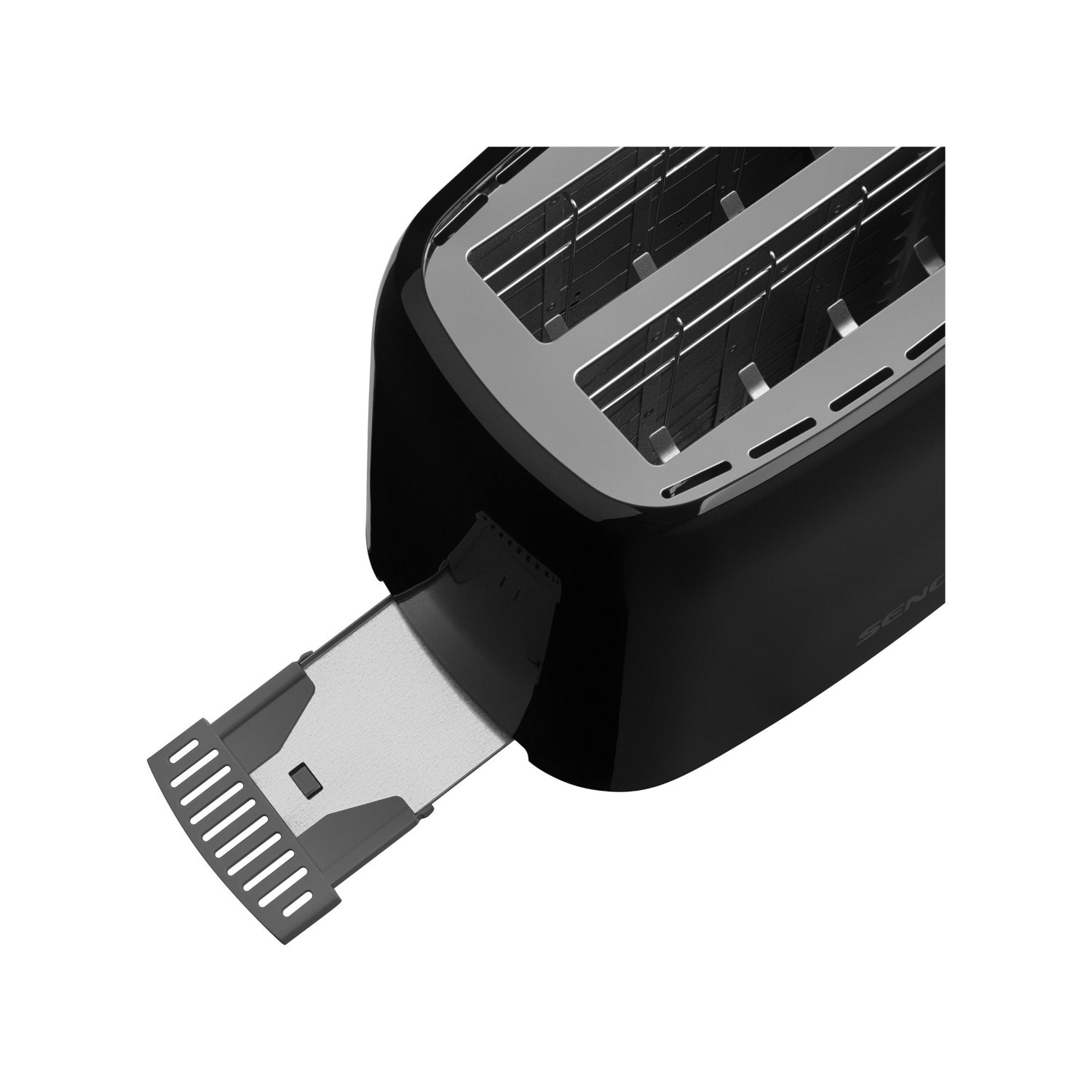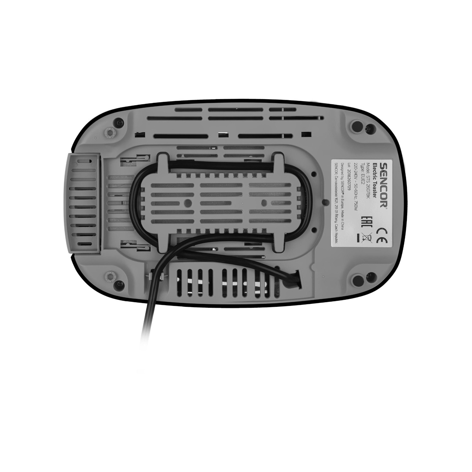 یک سینی در قسمت پایین توستر نان سنکور مدل STS 2607BK برای خرده نان وجود دارد که شما می توانید بعد از تهیه ی نان هایتان آن را جدا کرده و تمیز کنید. در قسمت زیر دستگاه محل مخصوص برای نگهداری سیم تعبیه شده است. همچنین پایه های توستر ضد لغزش هستند.