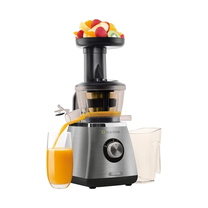عصاره گیر سنکور مدل SSJ 4050NP محصولی از برند SENCOR می توانید با استفاده از آن مواد مغذی و ویتامین های آب میوه ها را حفظ کنید چون به آهستگی میوه ها را له می کند و مانع از اکسید شدن آن ها می شود. عصاره گیر مدل 4050 سنکور دارای موتوری با توان 400 وات است که 60 دور در دقیقه می چرخد و انواع میوه ها را برایتان آب گیری می کند و می تواند تا 15 دقیقه مداوم کار کند و پس از آن خودکار خاموش خواهد شد. جنس بدنه این عصاره گیر از استیل و پلاستیک مقاوم ساخته شده و صافی های آن از جنس تیتانیوم هستند که دارای ماندگاری طولانی هستند. ظرف های آب میوه گیری و مخزن تفاله نیز از پلاستیک شفاف می باشند.