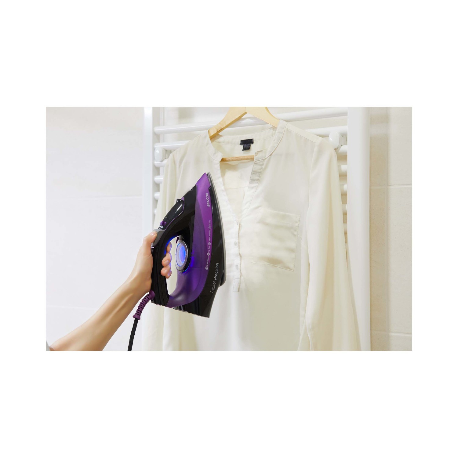 این دستگاه اتو بخار دستی Sencor SSI 9000BK دارای بخاردهی به صورت عمودی است که شما به راحتی بدون اینکه لباس یا پارچه ی خود را از چوب رختی جدا نمایید می توانید آنها را اتو کنید. بر روی بدنه ی اتو بخار یک صفحه نمایش بزرگ LED قرار دارد که به شما کمک می کند تا بهتر بتوانید حالت های تنظیم دستگاه را مشاهده کنید. این مدل دستگاه با کارکردی آسان می تواند یک اتو بخار عالی برای شما باشد. همچنین این اتو بخار با کارکردهای متفاوتی که دارد سرعت اتوکشی شما را بالا می برد و به سادگی در هدر دادن وقت شما جلوگیری می کند.