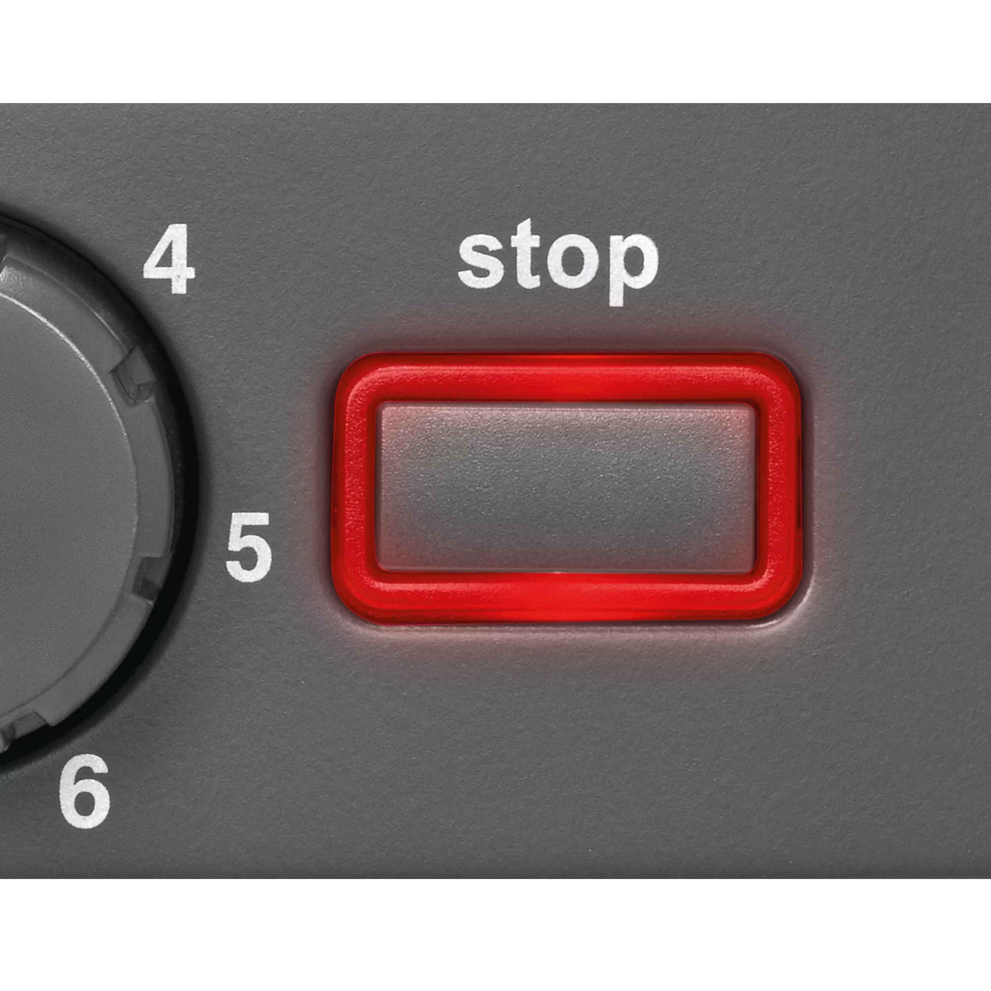 ولوم چرخشی قرار گرفته بر روی دستگاه دارای 6 حالت مختلف تنظیمات بوده تا به میزان دلخواهتان نان را گرم یا برشته نمایید. گاهی اوقات به یک نان تست قهوه ای طلایی فکر می کنید، و سپس نتیجه آنطور که انتظار می رود نیست. با یک توستر متمرکز خودکار، دقیقاً نان تست مورد نظرتان را دریافت می کنید. با توستر بوش نان به طور خودکار در مرکز قرار می گیرد و به طور یکنواخت برشته می شود. همچنین می توانید از دکمه توقف (stop) استفاده کرده و زمانی که دوست داشتید عملکرد دستگاه را متوقف نمایید.