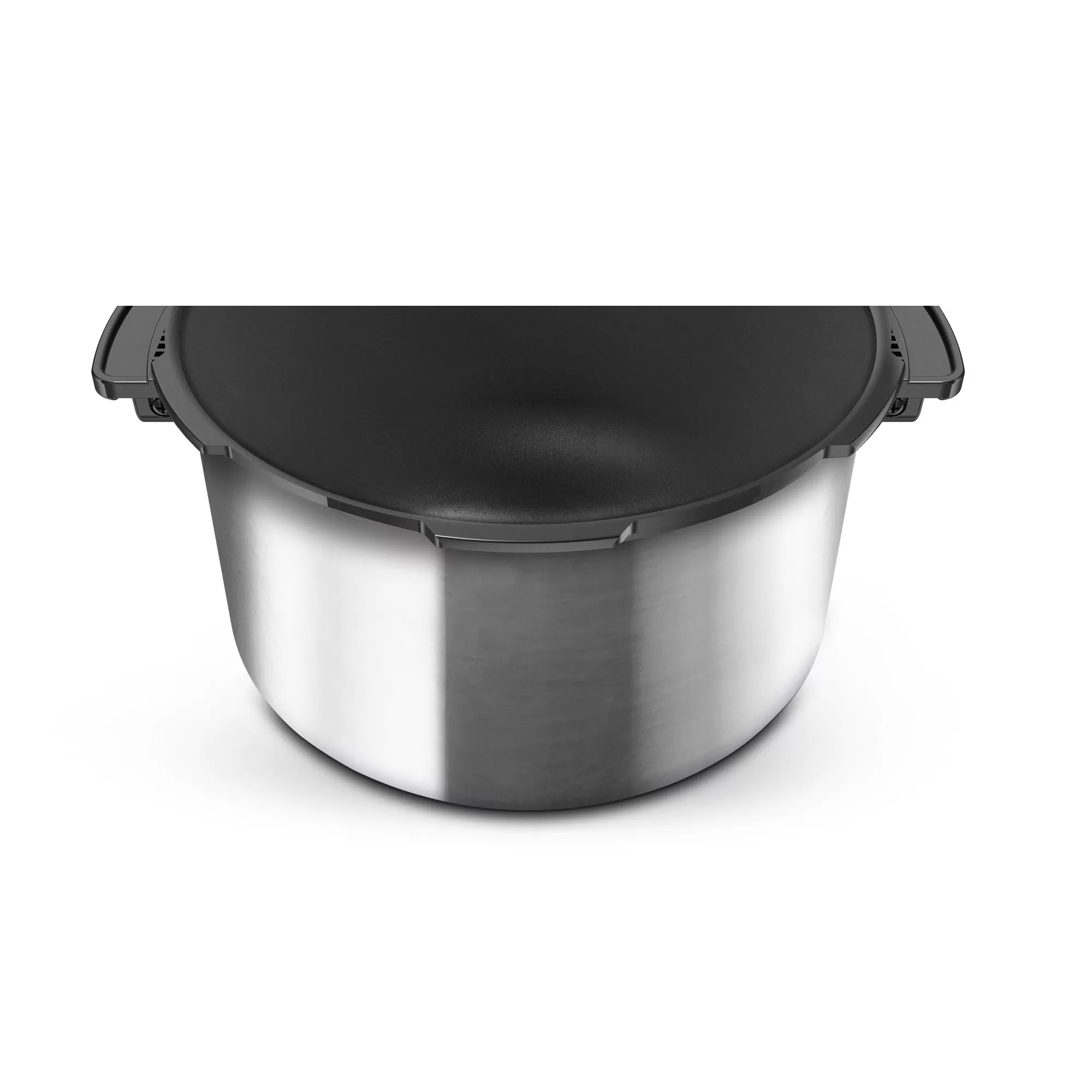 تمامی برنامه ها و عملکرهای این مولتی کوکر بر روی صفحه نمایشگر LCD و با چراغ های نشانگر قابل مشاهده هستند. این دستگاه مجهز به قفل کودک است و نیز سیستم های ایمنی مورد نیاز برای هر دستگاه پخت و پزی در آن به کار گرفته شده که شامل: سوئیچ ایمنی، دریچه خروج بخار اضافی، خاموش شدن خودکار پس از اتمام برنامه پخت، محفظه لمسی خنک برای جلوگیری از خطر سوختگی و پایه های ضد لغزش می شود.پلوپز بوش مدل MUC88B68 پنل تنظیماتدیگ مولتی کوکر بوش مدل MUC88B68 گنجایشی معادل 5 لیتر برای 10 نفر دارد، بنابراین می توانید به راحتی برای همه اعضای خانواده و مهمانانتان انواع غذاهای لذیذ را در کمترین زمان آماده کنید. جنس داخلی این دیگ از تفلون نچسب ساخته شده است که نه تنها به خوبی حرارت را پخش می کند، بلکه تمیزکاری و شستشوی آن بسیار راحت انجام می شود. بدنه و دیگر قسمت های این دستگاه که با مواد غذایی در ارتباط هستند از پلاستیک فاقد BPA ساخته شده اند تا این دستگاه وعده های غذایی سالم را برای شما به ارمغان بیاورد.