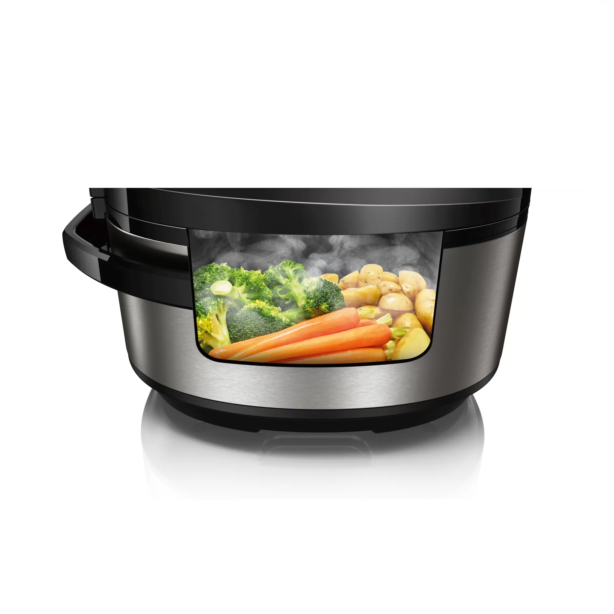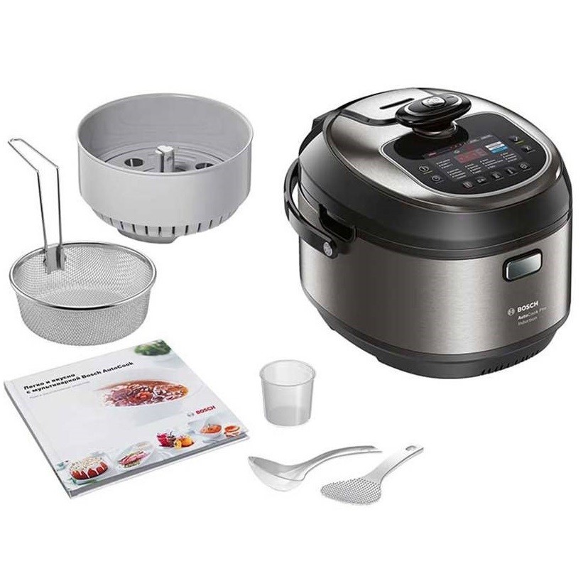 به همراه مولتی کوکر BOSCH MUC88B68 تجهیزاتی از جمله؛ سبد بخار دولایه برای آماده سازی یک وعده غذایی کامل مثل گوشت و سبزیجات، کفگیر، ملاقه، پیمانه اندازه گیری و کتاب دستور غذا با بیش از 100 غذای متنوع وجود دارد. برای حمل و جابه جایی راحت تر دستگاه، یک دسته حمل برای آن در تعبیه گردیده است.