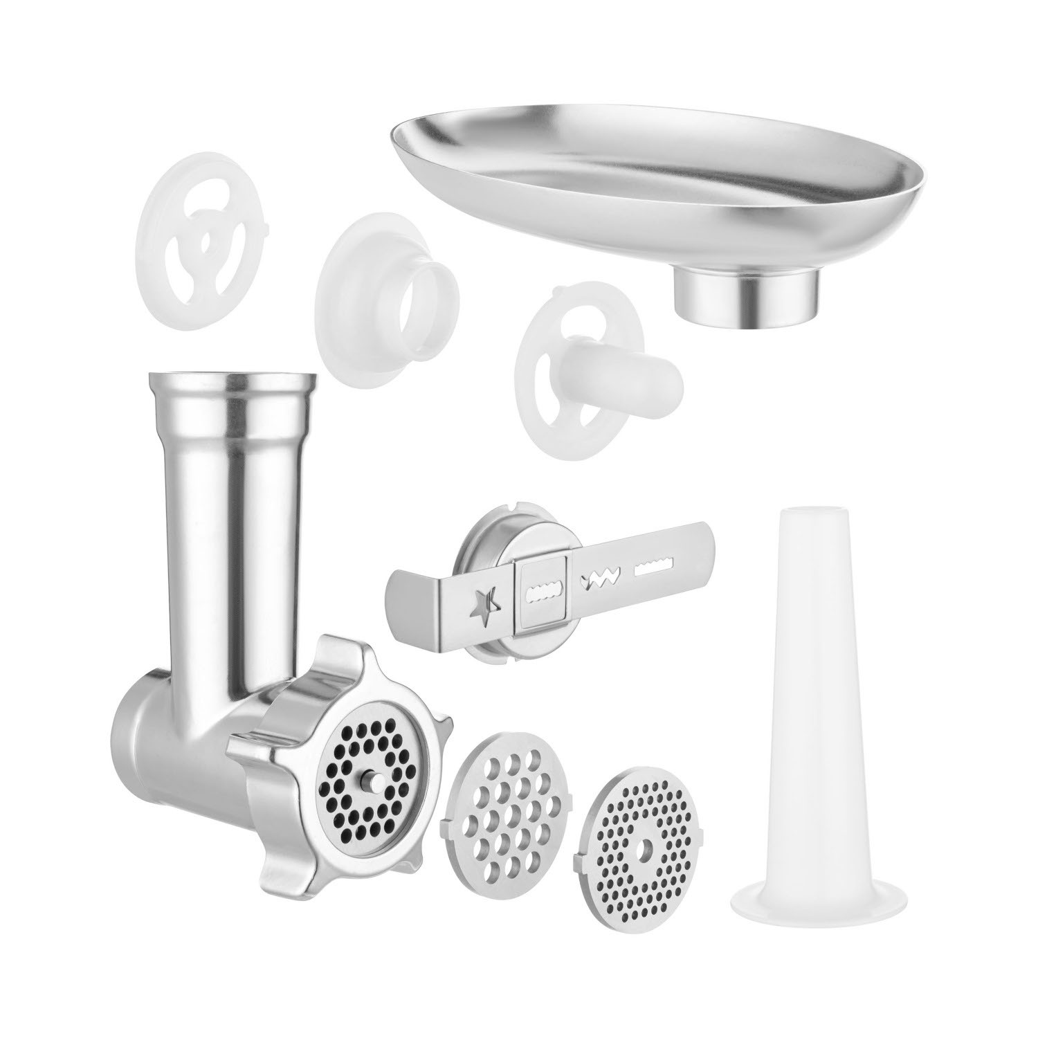این دستگاه (Sencor STM 7873VT Stand Mixer) توانایی چرخ کردن گوشت به وسیله ی سَری چرخ گوشتی که همراه آن است، را دارد. این چرخ گوشت قابلیت چرخ کردن مواد در اندازه های متفاوت به وسیله ی 3 شبکه ای که به همراه آن است را دارد. شما می توانید انواع بیسکویت و کوکی ها به وسیله ی تیغه ی مخصوص آن تهیه کنید و همچنین انواع سوسیس خانگی را با آن درست کنید.