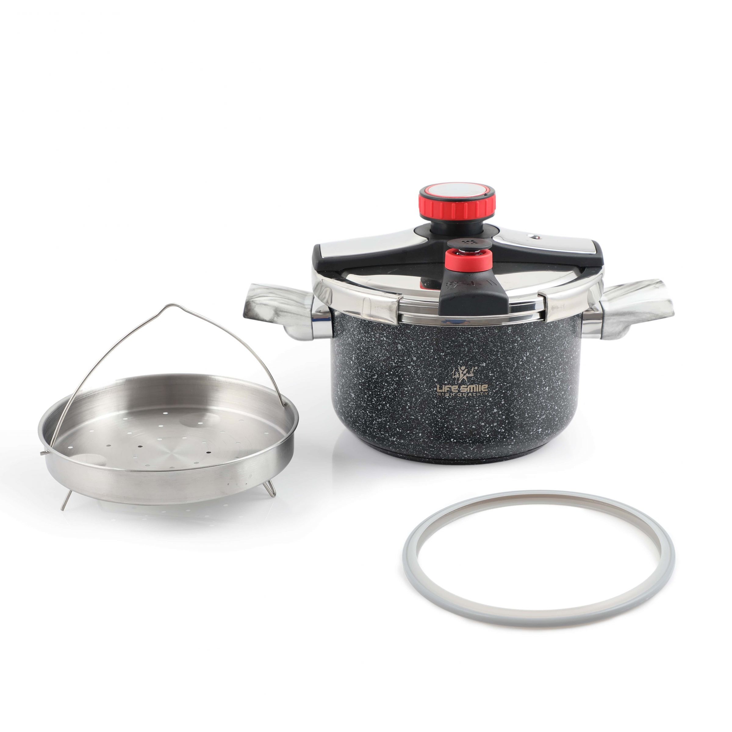 با زودپز دوقلوی مدل LIFE SMILE ZDS 7 5M میتوانید در کمتر از یک سوم زمان معمول به سرعت غذاهای خانگی را تهیه کرد. کف القایی دیگها دارای یک لایه ضخیم است که به ماندگاری بیشتر آنها بر روی اجاق گاز کمک میکند. این محصول دارای دستگیرههای سیلیکونی ایمن بوده که در برابر حرارت مقاوم هستند. بر روی درب زودپز یک دریچه به منظور خروج بخار اضافی تعبیه شده است که خیال کاربر را در زمان آشپزی راحت میکند.